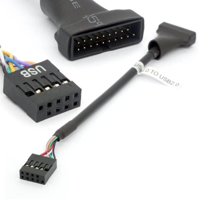 hero-s Câble d'extension USB 3.0 19/20 broches 1 à 2 Y Adaptateur d Permet de convertir l'embase USB 3.0 19/20 broches de la carte mère en 2 ports USB 3.0 Type A femelles. 2. Avec deux ports USB 3.0 et un port 19/20 broches. 3. Matériaux respectueux de l'environnement, bonne conductivité électrique, forte capacité anti-interférences, pour une transmission de données à haut débit stable Adaptateur Usb Femelle Femelle Adaptateur USB 3.0 Vers Double DisplayPort 4K 60 Hz 2 Ports Femelles PC L'adaptateur double port USB 3., 0 WLGQ est une solution compacte et fiable pour étendre la connectivité de votre PC de bureau. Adaptateur d'extension double USB 3., 0 : convertit un seul connecteur de carte mère 19/20 broches en deux ports USB 3., 0 femelles standard Répartiteur USB 3.0 19/20 Broches Vers Double Port Adaptateur Prises 1 Vers 2 Câble D'Extension Interne Pour Ordinateur Carte Mère 200 Mm · Caractéristiques... Parfait pour les constructeurs de PC et les mises à niveau de système qui cherchent à maximiser la connectivité USB. Prise en charge des données haute vitesse – Compatible avec USB 3., 0 (5 Gbit/s) et rétrocompatible avec USB 2., 0/1., 1., Idéal pour les PC de bureau : ajoute deux ports USB 3., 0 externes sans remplacer votre carte mère. Design durable et blindé : assure une transmission stable du signal et une fiabilité à long terme. Prêt à l'emploi – Aucun pilote nécessaire ; il suffit de le connecter et de l'utiliser.