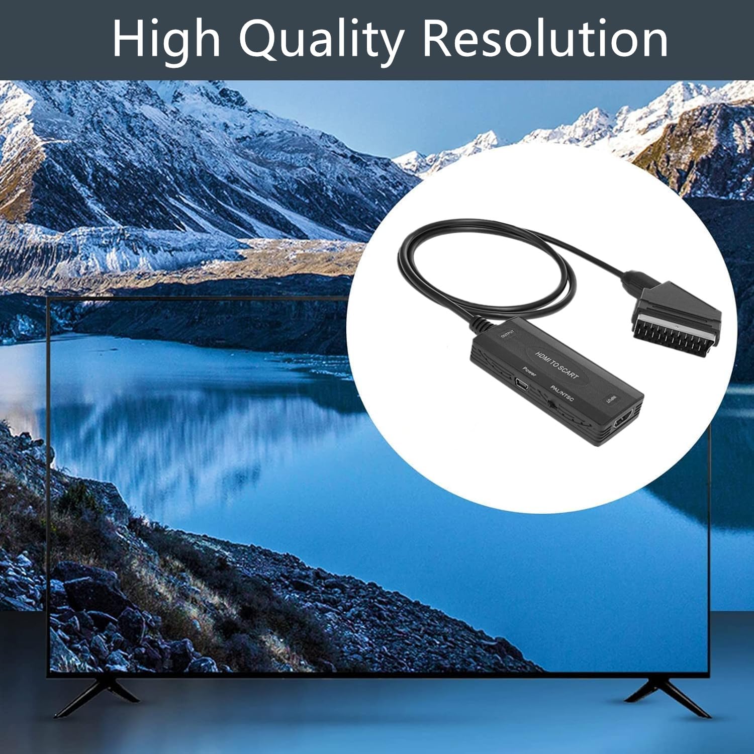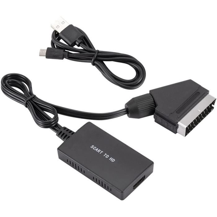 Câble USB Alimentation Péritel Convertisseur Péritel Vers HDMI, Adaptateur Peritel HDMI Avec Câble USB Adaptateur Pour DVD Décodeur Adaptateur Péritel HDMI Le convertisseur HDMI Peritel traduit les signaux analogiques en signaux numériques et inversement. Connectez deux appareils différents sur le plan technologique grâce à un convertisseur HDMI péritel pour afficher vos images sur un moniteur. Convertissez les signaux péritel en signaux HDMI de 720p ou 1080p Adaptateur Peritel Hdmi Adaptateur HDMI Pour IPhone Denlane - 1080P Plug & Play - Connexion TV/Projecteur Connecteur Iphone Vers Tv Image Full HD 720p/1080p : le câble d'interface multimédia péritel vers HD peut convertir les signaux composites en sortie 720p ou 1080p avec le bouton de commutation, offrant un traitement avancé du signal avec une haute précision, couleur et résolution pour une expérience visuelle HD. Adaptateur Péritel Vers Hdmi, Câble Péritel Vers Hdmi, Convertisseur Audio Vidéo Péritel Tout En... Large compatibilité : l'interface d'entrée péritel vers HD du convertisseur d'interface multimédia permet la connexion de DVD, décodeurs, Sky ou d'autres appareils avec un port de sortie péritel ; le format d'entrée péritel prend en charge les entrées PAL, NTSC3., 58, NTSC4., 43, SECAM, PAL/M, PAL/N. Connectez simplement l'adaptateur avec un câble et regardez des vidéos HD. Pour éviter un mauvais achat, veuillez confirmer si l'entrée (péritel) et la sortie (HDMI) avant d'acheter. Aucun pilote supplémentaire nécessaire, facile à installer et à utiliser.