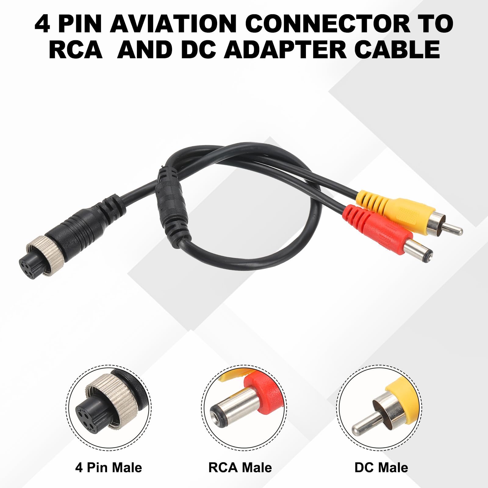 Adaptateur mono jack aviation femelle vers double jack aviation mâle Connectez les extrémités RCA et DC femelles à la caméra de recul et au connecteur RCA 2939, et branchez la prise femelle à 4 broches dans l'écran à 4 broches. Câble Blindé 29 Cm 20 Cm 4 Broches Mâle Aviation Plug Vers RCA Mâle Et DC Mâle Câble De Connecteur RCA AV + DC Vers M12 4 Broches Pour Caméra De Surveillance Vidéo Et Audio – (1 Pièce Adaptateur Moniteur CCTV Mode d'emploi : Aucun câblage nécessaire, il suffit de brancher et de l'utiliser. Description du produit Ce câble adaptateur mâle à 4 broches vers RCA femelle est idéal pour connecter des systèmes de caméra de recul et des systèmes de vidéosurveillance dans les véhicules. Il peut être largement utilisé dans divers appareils, tels que les systèmes de vue arrière de véhicule, les systèmes DVR, les équipements industriels pour connecter des caméras ou des... PATIKIL 5/8 SAE âle x 1/2 SAE Feelle Laiton Évasé Tube Raccord, 3... Application : Ce câble adaptateur mâle 4 broches vers mâle RCA est idéal pour connecter des systèmes de caméra de recul et des systèmes de surveillance CCTV dans les véhicules. Avantage : Le câble est blindé à 100% pour une excellente protection contre les interférences EMI/RFI, avec des fils et des connecteurs liés ensemble à l'aide de matériaux en PVC et cuivre naturel pour améliorer l'isolation, la résistance à la traction, et prévenir la rouille et l'oxydation Il peut être largement utilisé dans divers appareils, tels que les systèmes de vision arrière de véhicules, les systèmes DVR, l'équipement industriel pour connecter des caméras ou des capteurs à des systèmes d'acquisition de données, et les systèmes CCTV Caractéristiques : Couleur : Noir Matériau : PVC, fil de cuivre Courant de fonctionnement : 1 à 2 A Tension de fonctionnement : 12-24 V Longueur : 28 cm Diamètre du fil : 4,5 mm Température de fonctionnement : -20 à 80 °C Contenu : 1 câble de moniteur Avantages : Le câble est blindé 100 mâles pour une excellente protection contre les interférences EMI/RFI, avec des fils et des connecteurs liés ensemble à l'aide de PVC et de cuivre pur pour améliorer l'isolation, la résistance à la traction et éviter la rouille et l'oxydation. Instructions : Aucun câblage nécessaire, il suffit de brancher et de jouer. Il peut être largement utilisé dans divers appareils, tels que les systèmes de vue arrière de véhicule, les systèmes DVR, les équipements industriels pour connecter des caméras ou des capteurs à des systèmes d'acquisition de données et des systèmes de vidéosurveillance.