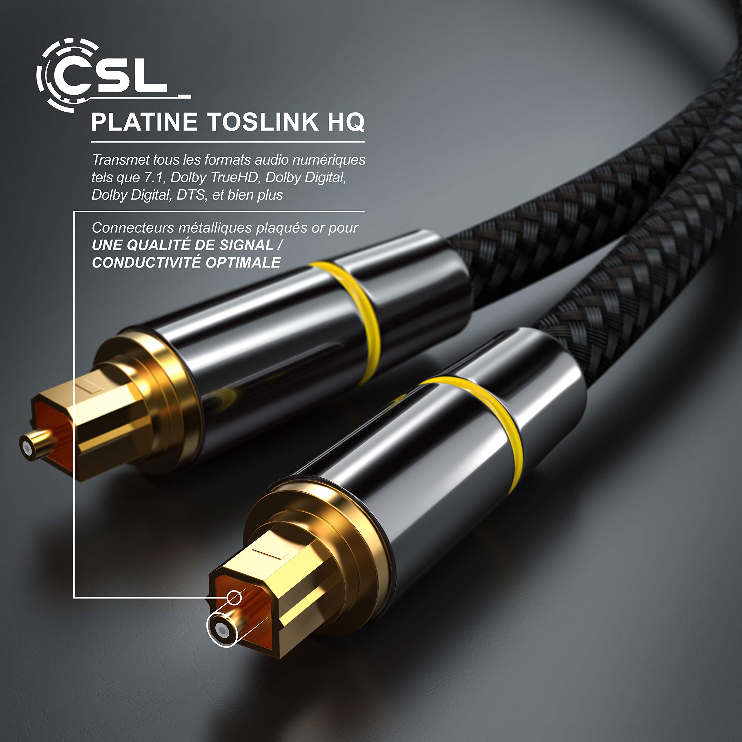Le raccord est compatible avec les équipements Home Entertainment, TV, Playstation 3 (PS3), Playstation 4 (PS4), XBOX One, XBOX 360, lecteur Blu-Ray, lecteur DVD, centre multimédia et bien plus encore. Câble Pour Ps5 Xbox Dolby TNP Câble Audio Optique Numérique Mini Toslink Vers Toslink (1,8 M) – Câble Adaptateur Toslink Standard Vers Mini Toslink Mâle Connecteur Convertisseur Jack Câble Connecteur Toslink Plaqué Or Qualité sonore exceptionnelle grâce à l'interface Toslink Le câble Toslink CSL de qualité supérieure transmet des données audio numériques dans votre divertissement à domicile ou votre chaîne Hi-Fi. Connecteur Toslink pour montage fibre optique Empêche efficacement les interférences. Les connecteurs en métal plaqué or garantissent une qualité de signal de première classe. Cliff Connecteur fibre optique FCR684208T émetteur Toslink - Conrad... Les câbles Toslink sont également appelés conducteurs à fibre optique. Le câble Toslink haut de gamme de 0,5 m de long sert de connexion optimale à vos appareils audio. Les conducteurs d'ondes optiques sont extrêmement résistants aux interférences magnétiques ou électriques. Câble audio optique numérique Toslink 20 m Connectez vos appareils compatibles Toslink tels que les lecteurs DVD et Blu-ray, téléviseurs HDTV, cartes son PC ou consoles de jeux à votre système audio Toslink. Par conséquent, les données audio transmises peuvent être reproduites de manière fidèle et de qualité supérieure.