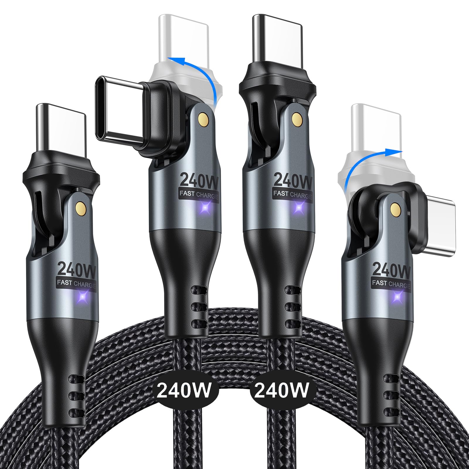 OpenII Câble USB de Type C Spirale, coudée à 90 degrés câble d AUFU 540° USB C Magnétique Cable Usb C 90 Degrés AUFU Adaptateur USB C Vers USB C 240W, Connecteur USB C Coudé Câble Charge Rapide PD 240W Rotation Câble Usb-C 30 Cm Usb 3.1 Type C Coudé À 90° Vers Usb A 3.0 Angle Droit 90°[S1976... Adaptateur USB C coudé Adaptateur d’Angle mâle vers Femelle Chargement Rapide pour Casque...