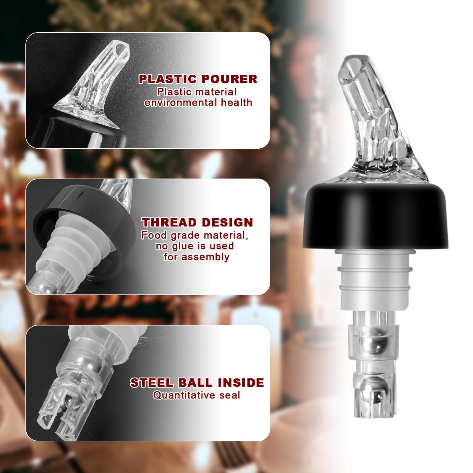 Bec Verseur De Liqueur Mesuré, Bouteille De Mesure Automatique Rapide De 15 Ml Bec Verseur De Liqueur Mesure En Plastique Pour Alcool Vin Cocktail Vinaigre Spiritueux Rouge Remarque : des verseurs inexacts se produiront lorsqu'ils sont utilisés avec de l'eau Spécifications : Matériau : Plastique Capacité : 15 ml Couleur : Transparent, Rouge (Facultatif) Poids : env. Doseur Alcool 15ml Verseur De Bouteille Mesuré, 15 Ml Doseur Doseur | FindTheDeal Accessoire Bar Maison Fournit des verseurs rapides et précis 4., Également utilisé avec des jus, des sirops et des huiles. Fonction] Ce verseur rapide mesuré s'adapte à la plupart des bouteilles d'alcool, conformément aux normes internationales de bouteille de vin, de vin rouge... DOSEUR DISTRIBUTEUR MURAL Pour Bouteille Ambassadeur Neuf Bar Bistrot... [Matériel] Fabriqué en plastique de qualité alimentaire, notre bec verseur de liqueur de mesure est sûr et robuste pour une longue durée de vie 15g-20g Le paquet comprend : 1 x distributeur verseur de bouteille mesurée Outil idéal pour la maison et le bar pour les boissons, les vins, les cocktails Outil idéal pour la maison et le bar pour les boissons, les vins, les cocktails Matériel Fabriqué en plastique de qualité alimentaire, notre bec verseur de liqueur de mesure est sûr et robuste pour une longue durée de vie Facile à utiliser Plug and play, facile à utiliser, le distributeur de verseur de bouteille de vin à mesure multifonctionnel permet un versement rapide et précis, 1., Ce verseur en plastique s'adapte à la plupart des bouteilles d'alcool, conformément aux normes internationales de bouteille de vin, bouteille de vin rouge et autres bouteilles de boissons 2., Le verseur est fabriqué à partir de matériaux de qualité alimentaire, sûrs et 3., Avec un design délicat, beau et multifonctionnel. [Facile à utiliser]Plug and play, facile à utiliser, le distributeur de verseur de bouteille de vin à mesure multifonctionnel permet un versement rapide et précis Largement utilisé Également utilisé avec des jus, des sirops et des huiles.