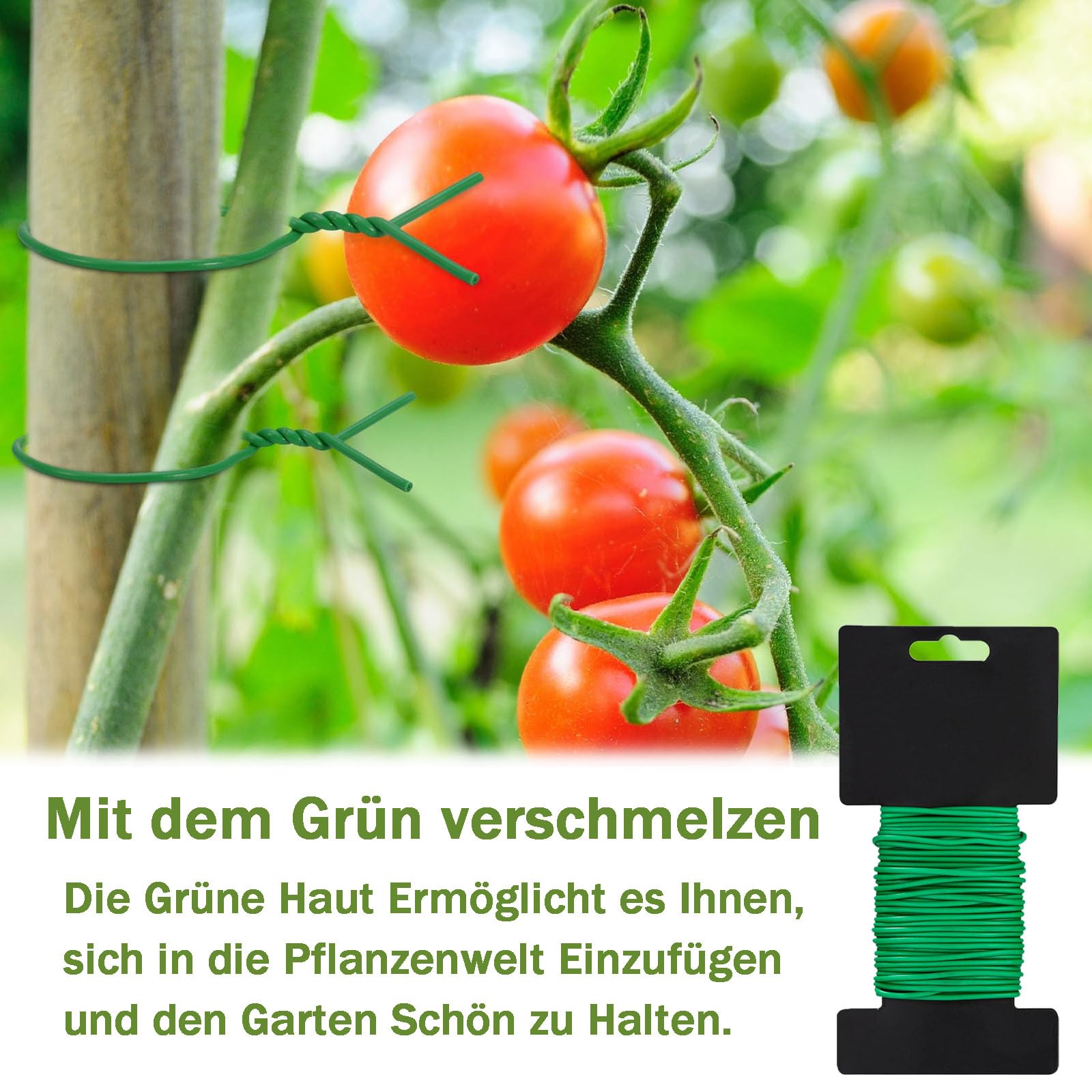 Attaches Plantes Jardin 150 Attaches Réglables Pour Plantes - Lien De Jardinage Vert 230mm | Support Tomates, Vignes, Arbustes Attaches Tomates Mode d'emploi Polyvalent, convient pour différentes applications. Fil Caoutchouté PVC Vert 2 Pièces Filet Végétal Filet De Jardinage Filet De Vignes Fil De Fer Jardin ● Poids du produit : 295 g. 100M Attache de Jardin pour Plantes, Lien Attache Vegetaux, Fil... Tuteur Plante,Attaches de câble de jardinage,100 pièces,fil électrique... Matériau : fil de jardin caoutchouté, ce ruban pour plantes est composé d'une peau extérieure en PVC et d'un noyau de fil de fer, le fil de liaison de jardin est flexible à tourner et à nouer. Facile à couper : le fil de jardin souple est facile à couper à la taille souhaitée avec des ciseaux ou un sécateur et se plie facilement pour attacher les plantes. Secousses : vous recevrez 2 rouleaux de fil de jardin souple, longueur : 10 m, diamètre : 2,5 mm, convient pour regrouper la plupart des plantes et des objets. Dimensions du produit : 0,25 x 1000 cm. Facile à utiliser : les paires torsadées caoutchoutées pour le fil de jardin sont emballées sur une plaque en plastique pratique qui ne s'emmêle pas et peut être utilisée directement. Spécification : Matériau : PVC, fil de fer., Couleur : vert.