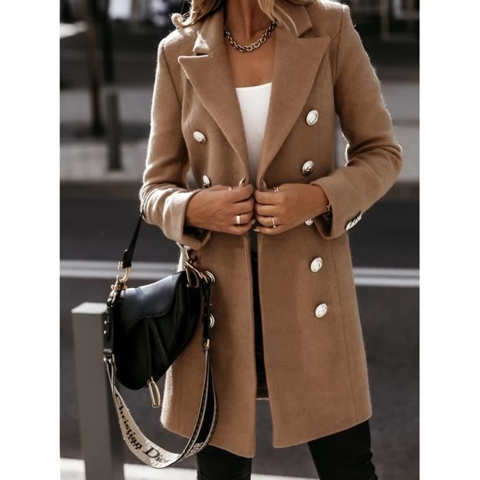 Manteau Hiver Femme Imperméable Manteau Femme Hiver Manteaux Et Blousons Veste En Laine Boutonnage Manteau À Revers Trench-Coat Epaissie Chic Et Élégant Blazer Nizi Manteau Coupe-Vent Couleur Unie Classique Veste Laine Boutonnage Simple Tissu : Doux, léger, doublé, vous garde au chaud et confortable toute la journée · Caractéristiques Manteau,Manteau en laine véritable mélangé pour femme, Double 【Style Assorti】Long vestes pardessus d'hiver pour femmes peuvent être portées avec une chemise, un pantalon de costume, des chaussures en cuir et une montre pour un look professionnel, ou avec un tricot, un jean, des chaussures décontractées et une écharpe pour un look hivernal décontracté. Design]Le manteau de femme à simple boutonnage a un design mince et à épaules droites, s'adaptant à la silhouette du corps, montrant des lignes nettes et une... 【Occasions Appropriées】Manteaux long en laine pour femmes conviennent à de nombreuses occasions, telles que les trajets quotidiens, les affaires, le shopping, la fête, les rencontres, la classe, etc. L'intégration de la laine permet à chaque pouce de tissu de rayonner de chaleur et de confort, délicatement lisse au toucher et reflétant un goût élégant. 【Poches Carrées Pratiques】Le manteau en laine mélangée pour femmes est doté de poches carrées des deux côtés afin de faciliter le transport de petits objets, tels que les téléphones portables et les portefeuilles, et de jouer un rôle décoratif, ce qui est à la fois pratique et beau. 【Tissu de Haute Qualité】 manteau d'hiver pour femmes est fait de tissu de haute qualité pour une texture élégante.