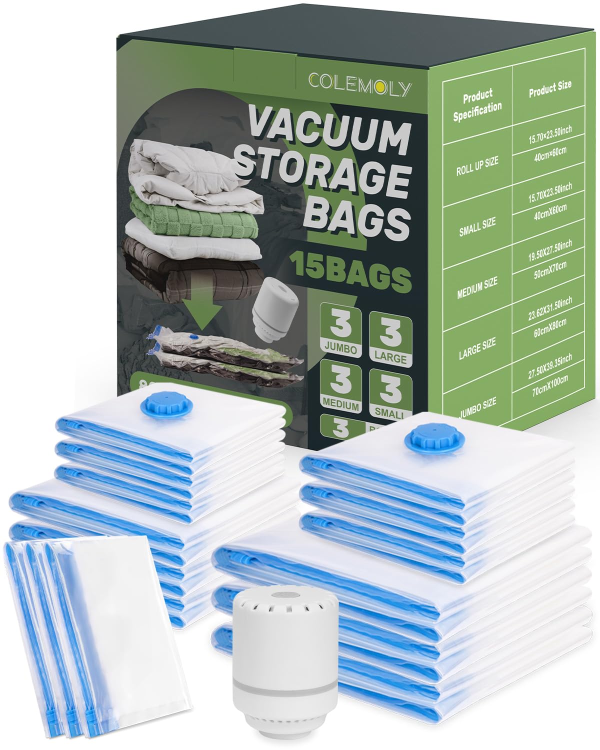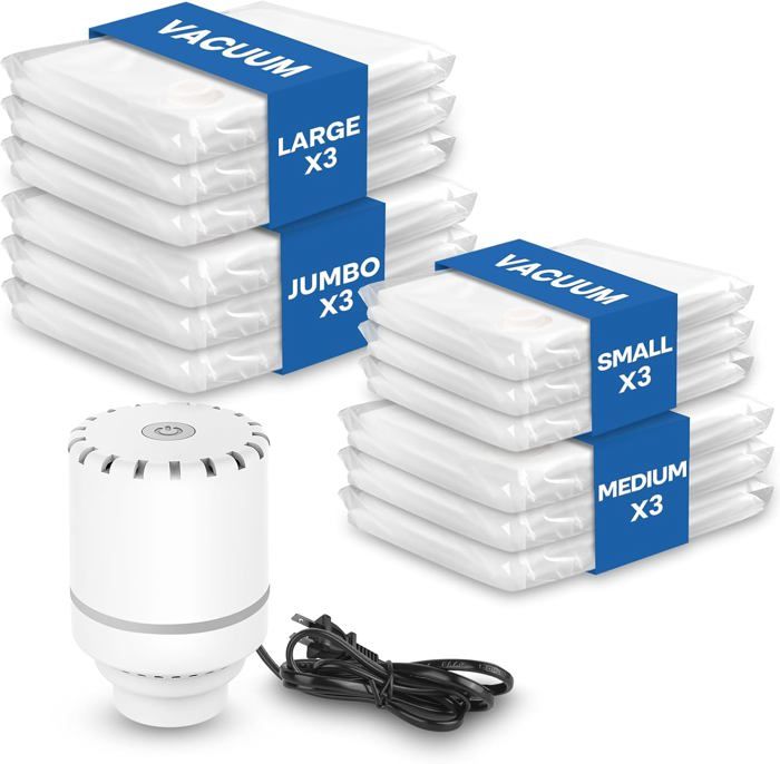 Optez pour un sac de rangement sous vide avec pompe ! Ce système ingénieux permet de compresser vos vêtements, couettes, oreillers et autres textiles en utilisant l'aspiration de votre aspirateur Idéal pour les vêtements, les couettes et les oreillers. Idéal en tant que sac de rangement sous vide pour textiles délicats et couettes volumineuses. Vos vêtements restent secs et frais jusqu’à 12 mois, même dans un environnement humide. Pompe électrique pratique pour une aspiration rapide : Grâce à la pompe incluse, aspirez l’air sans effort. Sac Sous Vide Vetement Aspirateur, avec Pompe électrique, 11 Pièces Sac de Rangement Sous Vide, Sac Rangement Sous Vide Aspirateur pour Couettes Vêtements Literie Voyage Déménagement, 2XL 3L 3M 3S Caractéristiques : Ces sac sous vide vetement aspirateur en pa+pe épais sont durables, réutilisables et résistants aux déchirures. Ensemble complet de 11 sacs pour tous vos besoins : Ce lot comprend 11 sac sous vide vetement aspirateur en 4 tailles : 2x 80x100 cm, 3x 60x80 cm, 3x 50x70 cm, 3x 40x60 cm. Sac Rangement Sous Vide Aspirateur Avec Pompe Électrique - 14 Sacs (5S Gagnez de la place instantanément lors de voyages, déménagements ou changements de saison. Les sacs sous vide vetement aspirateur offrent une protection longue durée contre l’humidité, les odeurs et les insectes. Lot 11 Sacs Rangement Sous Vide Avec Pompe électrique Sac Sous Vide Vetement Aspirateur Et Pompe Électrique Sac Compression Vêtements Couettes Ces sacs sous vide vetement aspirateur réduisent jusqu’à 80 % du volume, idéals pour les voyages, les déménagements et le rangement saisonnier. Utilisables aussi comme sac sous vide vetement aspirateur pour vêtements de bébé ou linge de maison. Leur double fermeture et valve anti-fuite protègent les vêtements de l'humidité, de la poussière et des moisissures. MULTIPLE COMPOSANTS DE TAILLES:Le kit de sacs à vide pour vêtements contient 11 sacs à vide (3*60x40cm,3*70x50cm,3*80x60cm,2*100x80cm)et 1 pompe électrique Aussi parfait comme sac sous vide vetement aspirateur pour oreillers ou linge de lit. Spécifications : Nom du produit : Sac sous vide vetement aspirateur Couleur : Transparent Matériau : PA+PE Taille : Xl (80 x 100 cm) L (60 x 80 cm) M (50 x 70 cm) Pet (40 x 60 cm) Contenu de l'emballage : 11 x sac sous vide vetement aspirateur 1 x pompe électrique Un sac rangement sous vide aspirateur parfait pour les voyages ou le rangement longue durée. Réutilisable, résistant et durable : Conçu pour durer, chaque sac sous vide vetement aspirateur est réutilisable et protège efficacement contre l’humidité, la moisissure et les insectes. Sac de rangement sous vide indispensable pour garder vos affaires en ordre. Ce sac de rangement sous vide est idéal pour les vêtements, couettes ou matelas.