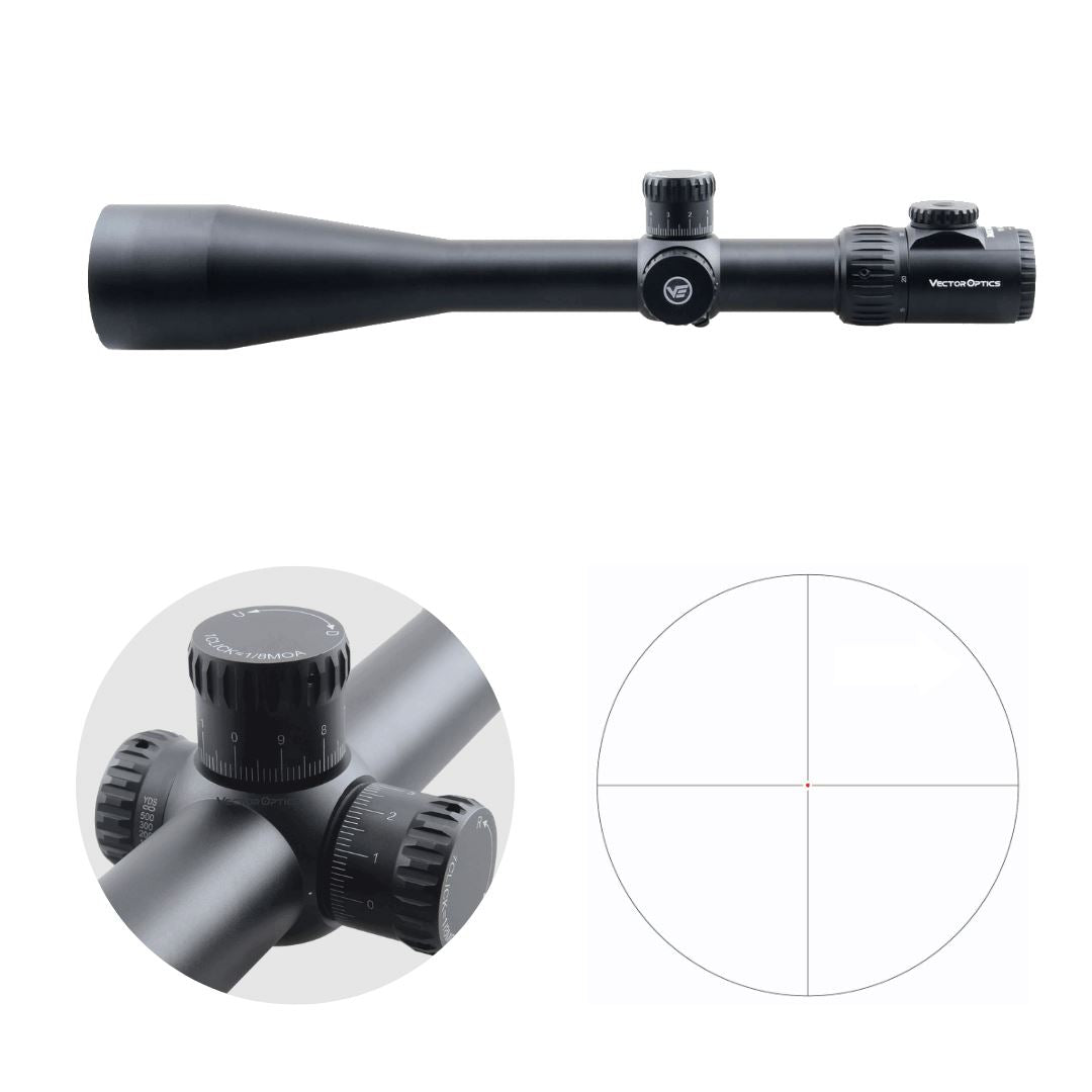Testé et résistant aux tirs : ., 223 ., 308win ., 3006 ., 300win ., 50BMG. Hauteur réglable : 40 MOA. Vector Optics SCOL-49 Veyron 6-24x44IR SFP Lunette De Visée Pour Le Sport, L'airsoft Et La Chasse, Fusil à Air Comprimé, Visière Cible, Lunette De Visée De Fusil, Portée Rifle Scope, Nombreux Lunette Vector Optics Minotaur Lunette VECTOR OPTICS Minotaur Gen II 12-60x60 Rét. lumineux Dot... Réglage latéral possible : 40 MOA., Réglage : 1/8 MOA Caractéristiques techniques : Grossissement : 10-50x. Espacement des yeux : 96-95 mm. Rempli de nitrogène et donc étanche (IPX6) et anti-buée Réglage des dioptries : -2 dpr à +2 dpr Réticule : VETD de la 2ème Niveau d'image. Idéal pour le tir sportif sur des distances moyennes à longues, résistance au tir jusqu'à calibre ., 22LR, ., 223, ., 308WIN, 30-06, ., 300WIN, ., 338 Lapua, ., 50BMG Pupille de sortie : 4,0-1,0 mm., Longueur totale : 425 mm., Poids : 960 g. Froadp Lunette de Visée Rouge et Vert Lunette de visée avec Montage... Réticule éclairé en rouge, 10 niveaux réglables + 1 vision nocturne., Pile requise : CR2032., Résistant aux chocs, à la pluie et au brouillard. Réglage de la hauteur avec Zero Stop, réglage latéral avec blocage (tirer pour régler, appuyer pour sécuriser) et possibilité de zéro Diamètre du tube central : 34 mm. VECTOR OPTICS LUNETTE DE VISEE MINOTAUR 10-50X60 GENII MFL