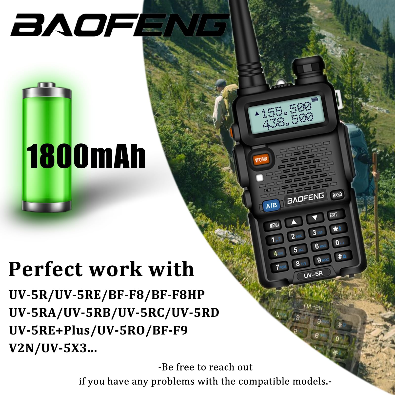Baofeng UV-5R BF-F8HP UV-5RA UV-5RE Plus Protective Cover Walkie Talkie... Conforme aux normes légales | Finition de haute qualité | Utilisation durable Contenu de livraison : 2x batteries | Batteries et accessoires par vhbw Batterie Compatible BL-5 Vhbw Vhbw 2 X Batteries Compatible With Baofeng UV-5R, BF-F8, UV-5RA, UV-5RE Batterie Li-ion 1800mah REMPLACEMENT POUR : - BL-5 vhbw - Accessoires et pièces de rechange de haute qualité pour prolonger la durée de vie de vos appareils électriques. New BAOFENG Pofung UV-5R Radio Replacement Battery For BF-F8HP V2 plus... vhbw - the clever way - Batterie de rechange de haute qualité avec une grande autonomie et compatible avec votre radio talkie-walkie (vous trouverez ci-dessous tous les modèles correspondants) - La batterie peut être chargée avec le chargeur standard ou un chargeur compatible - Du fait de cette grande capacité, un autre boîtier de protection est nécessaire - celui-ci est bien entendu inclus dans la livraison - Nos batteries répondent à toutes les normes de sécurité actuellesCONTENU DE LIVRAISON : - 2x batterie avec couvercle de fermeture (couleur : noir)DONNÉES TECHNIQUES : - Technologie : Li-ion - sans effet mémoire - Capacité : 1800 mAh - Tension : 7,4 V - Énergie nominale : 13,32 Wh - Couleur de la couvercle : noir - Nombre de cellules : 2 - Couvercle arrière du boîtier inclusCOMPATIBLE AVECBaofeng UV-5R, BF-F8, UV-5RA, UV-5RE, BF-F9Pour garantir la compatibilité, veuillez vérifier si votre batterie utilisée actuellement est répertoriée. New BAOFENG Pofung UV-5R Radio Replacement Battery For BF-F8HP V2 plus
