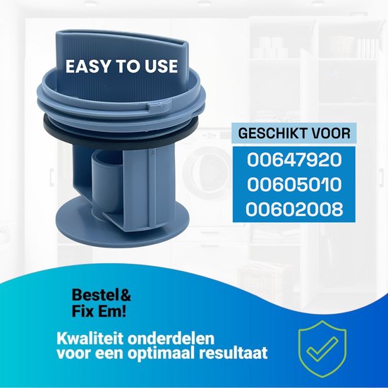 vhbw Filtre à peluches compatible avec LG FH4U2QDN1, FH4J6QS7, FH4J6TS8 1 pièce Filtre Rechange Bosch Siemens Vhbw Filtre à Peluches Compatible Avec Bosch WAE28465, WAE28464 Filtre Pompe De Vidange Ce filtre à peluche se monte sur les lave-linge de marque Bosch, Siemens, Balay, Constructa et Neff. Il s'agit d'une pièce d'origine Bosch. Référence 00647920. Vérifiez la compatibilité avec votre appareil dans la liste des produits compatibles disponible ci-dessous 1x filtre à peluches incl. joint anneau. Données techniques : Matériau plastique; Couleur : noir / bleu; Poids : 40 g; Diamètre : 6,3 cm; Longueur...