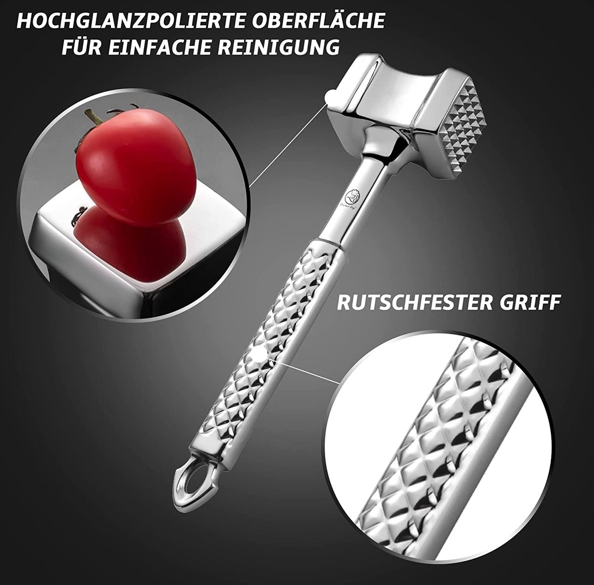 Marteau-maillet pour attendrisseur de viande - il est facile à et l'anneau sur la poignée peut être accroché facilement, pelle à piler la viande Marteau Cuisine Marteau à Viande, Attendrisseur De Viande Très Résistant, Marteau à Marteau à Viande Acier Inoxydable Le forfait comprend 1 x marteau attendrisseur de viande Caractéristiques - Couleur : Attendrisseur à viande en acier inoxydable argenté - Matériau : Aiguilles à viande en vrac en acier. Vovoly Attendrisseur de viande avec 24 laes ultra tranchantes en acier... maillet de cuisine Après l'attendrissement, la viande bat uniformément et le produit plus de saveur, meilleur goût. Maillet à viande en acier inoxydable - un côté est plat, adapté à l'expansion de la viande, rendant la viande plus fine, marteau à steak lâche L'ingrédient surprenant pour mariner et attendrir vos viandes - en plus... Idéal pour attaquer les fibres musculaires de la viande et de la volaille, il attendrit efficacement la viande sans déchirer la chair. - Taille : 3 x 3 x 18 cm pelle à viande. Attendrisseur de viande multi-faces - l'autre côté a de nombreux clous de marteau parfaits pour combattre les fibres musculaires de la viande et de la volaille, attendrir efficacement la viande sans déchirer la chair, outil attendrisseur de viande Ciieeo Marteau attendrisseur de viande double face en acier robuste L'autre côté est doté de nombreux clous. Maillet pour attendrir la viande - il est conçu pour desserrer les fibres de la viande et rendre la viande plus douce et plus délicieuse, attendrisseur de maillet à viande