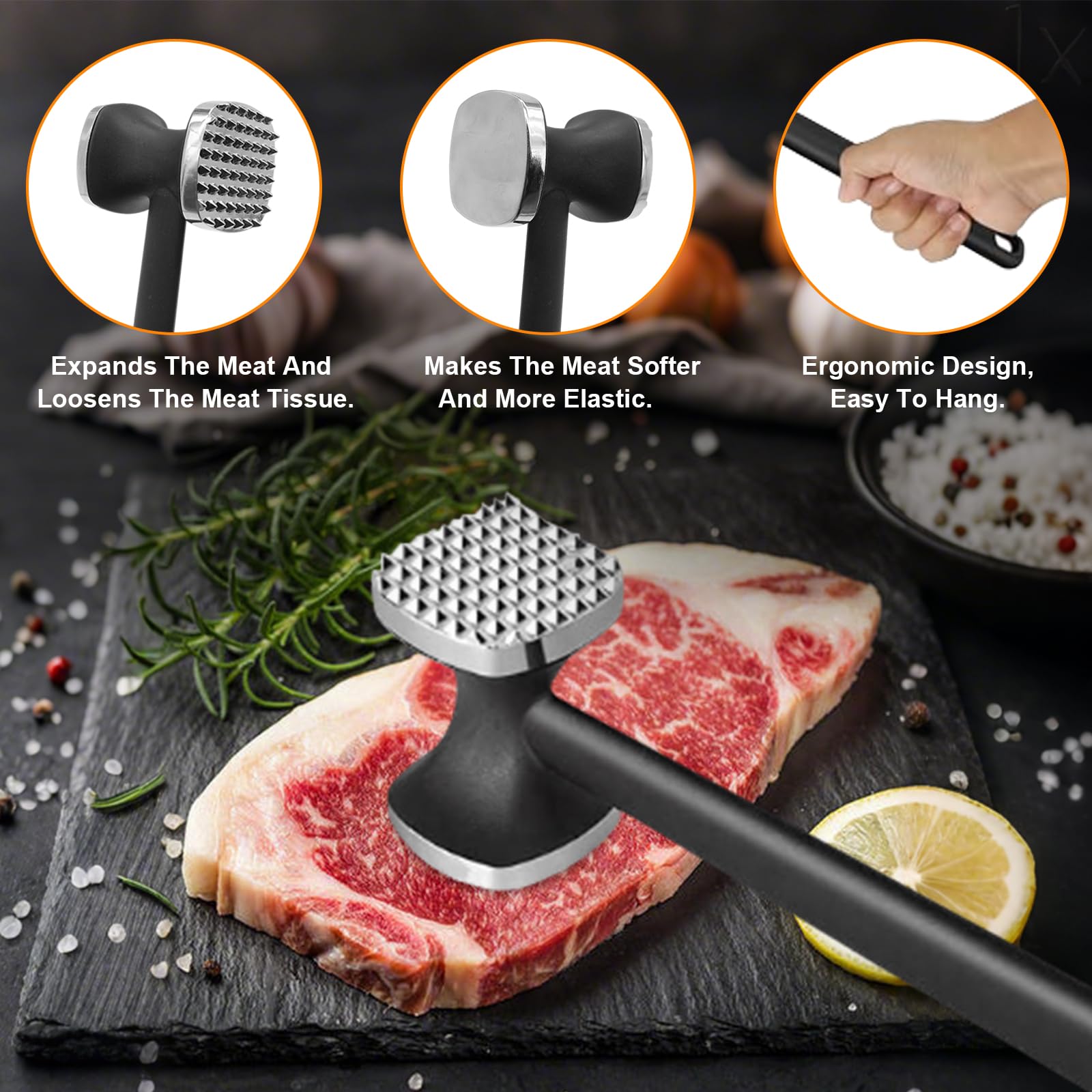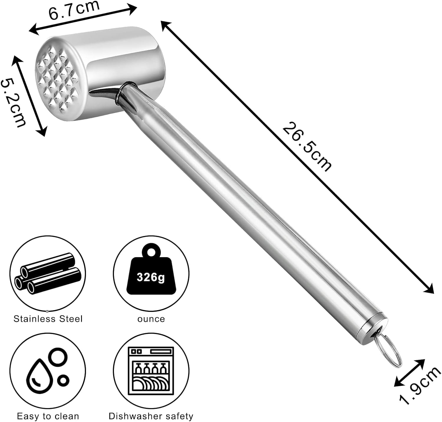 Marteau A Viande 2 PCS Marteau à Attendrir Viande En Inox, Marteau à Steak Attendrisseur De Viande Fabriqué en acier inoxydable 304 de qualité alimentaire, il est solide, hygiénique et va au lave-vaisselle. Son design double face est très pratique : un côté... Attendrir Viande Marteau à Viande Jissta Double Face 【Maillet à viande de haute qualité】Le maillet à viande est fabriqué en alliage de zinc de haute qualité et en fibre PP, adapté aux aliments, l'attendrisseur à viande est antirouille, sûr, non toxique, résistant à la corrosion, bien meilleur que les attendrisseurs en bois. Hachoir à viande, marteau à viande double face, attendrisseur de viande, maillet de cuisine en... 【Polyvalent】Le marteau à viande en acier inoxydable rend chaque bouchée de viande délicieuse. 【Conception ergonomique】L'attendrisseur de viande a une poignée antidérapante et l'attendrisseur de viande est léger à 150 g et tient confortablement dans la main. La surface du marteau a un diamètre de 5 cm et une longueur totale de 24,5 cm et est parfaite pour les plats savoureux. 【Conception double face】Conception double face du marteau à steak, polyvalent, un côté est doté de 60 clous convexes, chaque clou convexe servira à ramollir la viande, les assaisonnements peuvent pénétrer la viande rapidement, profondément et uniformément, l'autre côté est une surface plane pour écraser et lisser la viande pour rendre la viande plus tendre.