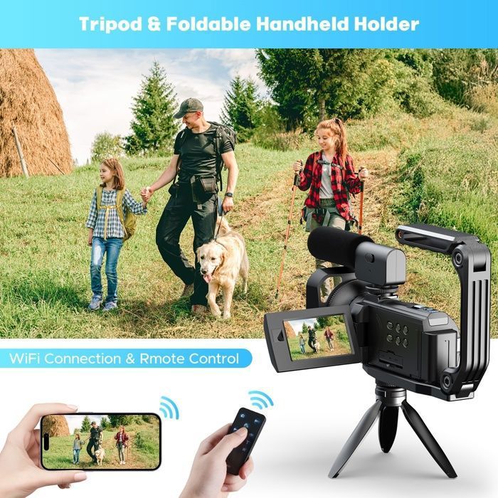Camera Xiaomi Caméscope HD 1080P, Caméra Vidéo 16MP, Caméra De Vlogging Caméra Vlog écran Rotatif 180 Caéscope 4K, caéra vidéo 48P UHD Wifi IR de vision nocturne pour Caéscope 4K, caéra vidéo 48P UHD Wifi IR de vision nocturne pour... ADAPTÉ POUR : Cet appareil photo convient aux enregistrements de croissance de bébé, aux voyages, aux mariages, aux enregistrements de campus, etc. Il est léger et pratique, ce qui le rend facile à utiliser dans divers endroits. RÉSOLUTION HD 1080P: L'appareil photo numérique prend en charge la prise de photos 16MP et l'enregistrement vidéo haute définition 1080P. Écran rotatif : ce produit dispose d'un écran d'affichage haute définition TFT de 2,4 pouces qui peut pivoter à 180 degrés pour selfie, vous offrant des images claires de toutes les images réelles. OBJECTIF GRAND ANGLE 0,45X: Son miroir grand angle assorti peut élargir l'angle de vision. L'objectif grand angle peut être démonté en un objectif macro, ce qui vous permet de prendre des photos à courte portée. Le fond a un trou de vis 1/4, qui peut être utilisé avec différents trépieds. Découvrz la puissanc du Caméscop numériqu avc sa capacité d pris d vu n 16MP t nrgistrmnt vidéo n 1080P HD. Parfait pour ls vloggrs, c caméscop st conçu avc un zoom numériqu 16x pour capturr chaqu détail
