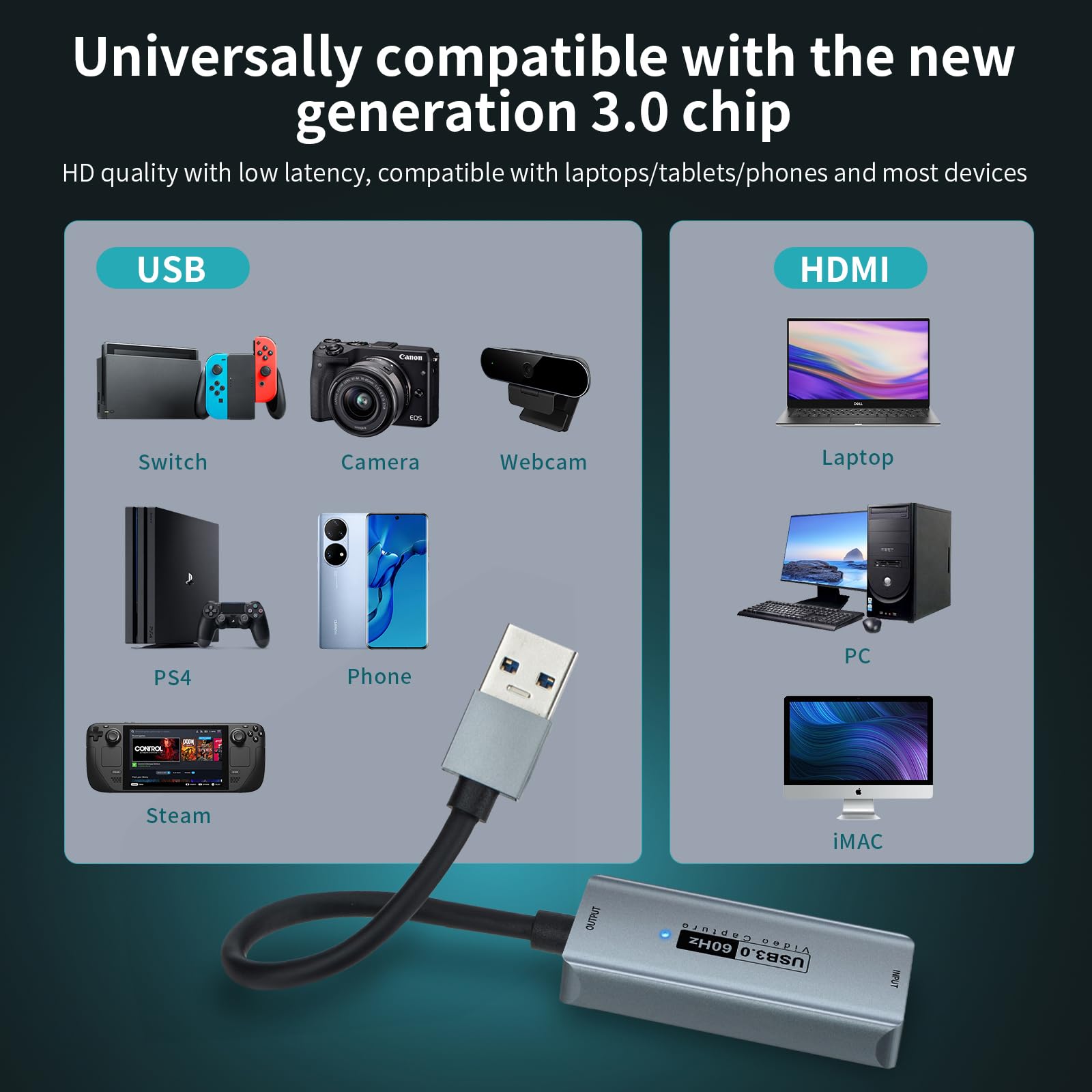 Est-ce que ça fait 1080P? et qu'en est-il de la qualité de l'image ? Enregistrement vidéo USB3., 0 1080P 60 Hz Carte de capture vidéo Fulfalic jusqu'à entrée 4K HD 60 Hz, résolution de sortie maximale 1920 × 1080 à 60 Hz. Carte de Capture vidéo 4K 1080p USB vers HDMI, Carte de Capture de Jeu Full HD 60 fps, Appareil de Capture vidéo pour Le Streaming en Direct et Contenu de l'emballage et remarque : 1 carte de capture vidéo HD, 1 adaptateur USB 3., 0 vers USB C, 1 manuel d'utilisation en anglais. Fulfalic Hdmi 3.0 Carte De Capture Vidéo HDMI Vers USB Au Meilleur Prix | HTN.tn Carte Capture Vidéo souhaite utiliser mon appareil photo comme webcam Est-ceque ça va marcher Fournit-il un flux vidéo clair à l'ordinateur Oui, il fournira un streaming vidéo clair et stable, transformant votre caméra en webcam professionnelle. Étape 2 : Apprenez à l'utiliser Étape 3 : branchez-le sur l'espace USB de votre ordinateur portable et branchez-le sur votre PlayStation Fulfalic Carte de capture vidéo et audio USB 3.0 4K HDI Loop-Out... Si vous rencontrez des problèmes de qualité lors de l'utilisation de ce produit, veuillez nous contacter, notre service client en ligne 24 heures sur 24 pour résoudre vos problèmes 【Largement utilisé】La carte de capture vidéo HDMI 4K peut capturer des vidéos et de l'audio simultanément. Vitesse de transmission plus rapide, mieux répondre aux besoins de capture vidéo à haute fréquence d'image, supportant l'entrée HDMI 4K 60HZ et la boucle jusqu'à 4K 60HZ, parfaitement adapté à la sortie vidéo USB3.0 1080P 60fps/2K30fps Large compatibilité : cette carte de capture HDMI vers USB C 3., 0 connecte facilement un appareil photo reflex numérique, un caméscope ou une caméra d'action, PS5/4, smartphones, Switch, Xbox à votre PC ou Mac, compatible avec Windows/Android/MacOS. FULFALIC Capture Card SPECIFICATION & HARDWARE REQUIREMENTS, Carte de capture 3., 0 haute vitesse : cette carte de capture de jeu HDMI Fulfalic utilise une puce 3., 0, une latence plus faible par rapport à l'ancien modèle, une vitesse de transmission plus rapide, prend en charge la résolution d'entrée maximale 3840 × 2160 @ 30 Hz, résolution de sortie maximale 1920 × 1080 @ 60 Hz, prend en charge l'enregistrement de haute qualité et le streaming en direct 1080p 60 fps. Cette carte de capture HDMI est adaptée pour l'acquisition haute définition, les diffusions en direct, les salles de conférence, l'enregistrement vidéo, l'enregistrement pédagogique, l'imagerie médicale, la diffusion en direct, etc. Est-ce que cela fonctionnera pour afficher ma Nintendo Switch sur mon PC ? Oui, notre carte de capture Fulfalic 3., 0 prend en charge la fonction de capture vidéo de la Nintendo Switch vers PC Veuillez noter que vous devez redémarrer le logiciel OBS Studio une fois la configuration audio terminée, sinon il n'y aura pas de sortie sonore.