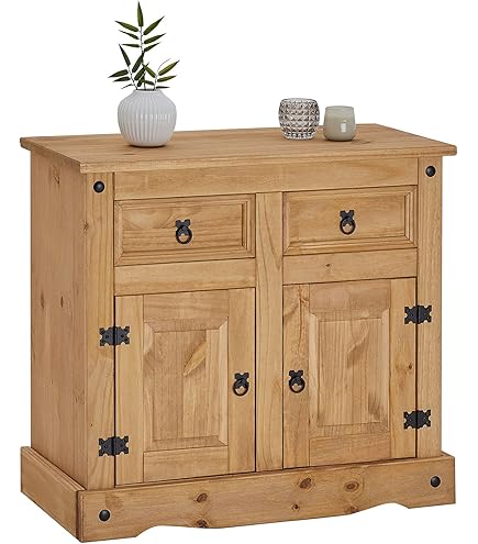 Table basse en bois avec 2 tiroirs latéraux et compartiment ouvert Meuble Salon Rangement Rustique Vida Designs Corona Buffet 3 Portes 3 Tiroirs, En Pin Massif Pour Meuble Déco Campagne Ce buffet en bois de pin massif allie praticité et style. Avec ses 3 tiroirs et 3 portes, il offre un grand espace de rangement pour garder votre salon organisé. Son dessus robuste est parfait pour exposer vos objets décoratifs. Dimensions : 112 x 🌸Dimensions: environ h29., 72 X w47., 24 X d17., 75 ,Avec 3 portes et 3 tiroirs, ce buffet offre beaucoup d'espace de rangement avec une surface supérieure lisse pour placer des objets sur le dessus. Panana Corona Panneaux latéraux, 3 Portes 3 tiroirs Panneaux latéraux en Bois assif eubles de... Sa surface cirée à la main rehausse le grain du bois, associé à de magnifiques charnières, poignées et clous noirs pour créer un style rustique délabré. 🌸Avec 3 portes et 3 tiroirs, ce buffet offre beaucoup d'espace de rangement avec une surface supérieure lisse pour placer des objets sur le dessus.