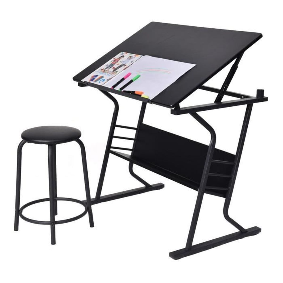 Table Multifonction Dessin Peinture Ordinateur VidaXL Table à Dessin Inclinable 2 Tiroirs Et Tabouret - La Poste Table A Dessin Dripex Adjustable Drawing Table Painting Desk with Tiltable Tabletop A – CounponYoleo Table à Dessin Inclinable avec 2 Tiroirs Bureau à Dessin Réglable en Hauteur avec Grand Plan de Travail Relevable 0°-60° Bureau pour Peintres/Architectes... Il peut non seulement être utilisé comme table à dessin professionnelle pour vos intérêts artistiques, mais peut également être utilisé comme bureau d'ordinateur et bureau normal pour vos tâches d'ordinateur portable. POLYVALENT ET PRATIQUE: Cette table à dessin offre tout ce dont vous avez besoin pour ranger vos fournitures d'art et de bureau : un plateau de bureau latéral amovible avec des compartiments de rangement séparés pour divers articles de papeterie. Le pied stable et antidérapant peut être ajusté, soulevé et verrouillé selon vos besoins pour éviter que les papiers et les livres ne tombent lorsque vous inclinez le plateau de table. ANGLE DE DÉTECTION RÉGLABLE DE 0 À 60 °: La table d'artiste peut être inclinée dans une plage d'angle de 0 à 60 ° qui répond à différentes utilisations telles que l'écriture, la lecture, le travail manuel, la calligraphie et la peinture. PAS DE TABOURET SUPPLÉMENTAIRE NÉCESSAIRE: L'ensemble de table à dessin comprend un tabouret robuste avec un cadre en métal élégant et une mousse noire recouverte de polyuréthane ainsi qu'une assise ronde. La table à dessin est fabriquée en acier léger de qualité supérieure et en panneau de fibres à densité moyenne avec une forte capacité de charge. Chaque pièce est marquée par des chiffres ou des lettres. Bureau enfant écolier junior FLEXI table à dessin réglable en hauteur...