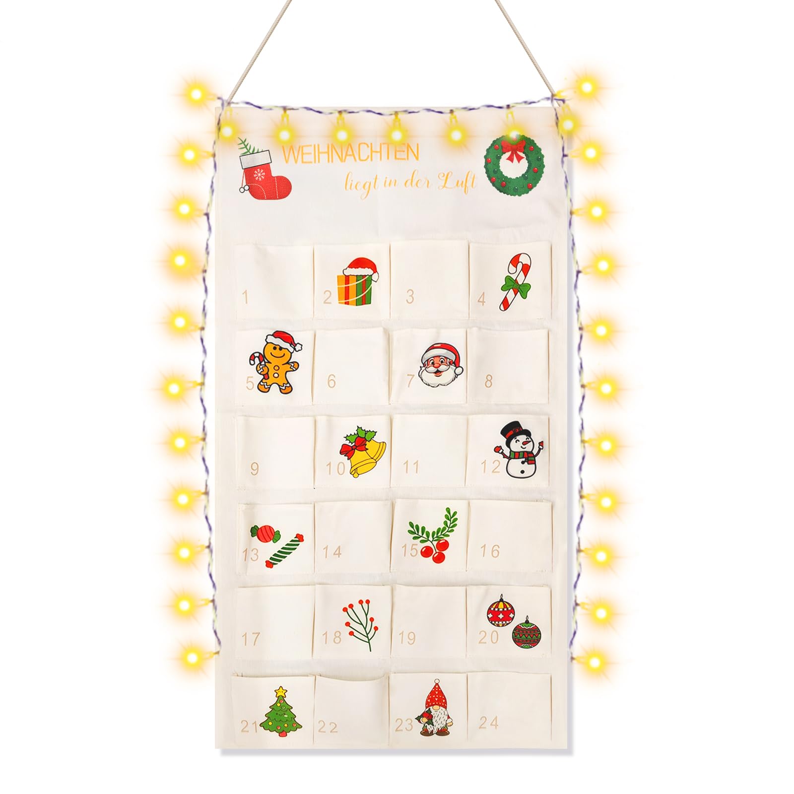 24 Pièces Calendrier de l'Avent à Replir,Sac en Tissu de Calendrier de... Beaucoup d'espace : notre calendrier de l'Avent 2025 à suspendre mesure 102 x 51 cm et dispose de 24 poches de 11 x 11 cm, dans lesquelles se trouvent de petites surprises telles que des bonbons, des chocolats, des bons de souhaits ou d'autres petits jouets qui permettent à vos proches et amis de récolter des surprises et des joies uniques chaque jour Durable et réutilisable : notre calendrier de l'Avent mural réutilisable à remplir est fabriqué en tissu de lin épais, durable, respectueux de l'environnement, épais et stable, sûr et durable et peut être réutilisé année après année. Décoration Murale Avent 102x51 Cm Calendrier De Avent Vide A Replir 2025, Sac Pour Calendrier De L'Avent Calendrier à Remplir Pratique et facile à accrocher : aucun accessoire supplémentaire n'est nécessaire, notre calendrier de l'Avent à remplir soi-même est livré avec deux bâtons stables et 2 bâtons stables, vous n'avez pas besoin de chercher des barres ou d'autres accessoires, il suffit de fixer le calendrier de l'Avent de Noël en tissu sur les murs, les portes, les cheminées ou les échelles 24 Calendrier de l'Avent à Replir, Sac en Tissu de Calendrier de l... Une façon amusante de mettre les enfants et la famille dans l'esprit de Noël Calendrier De L'avent De Noël Personnalisé En Tissu Fait Main