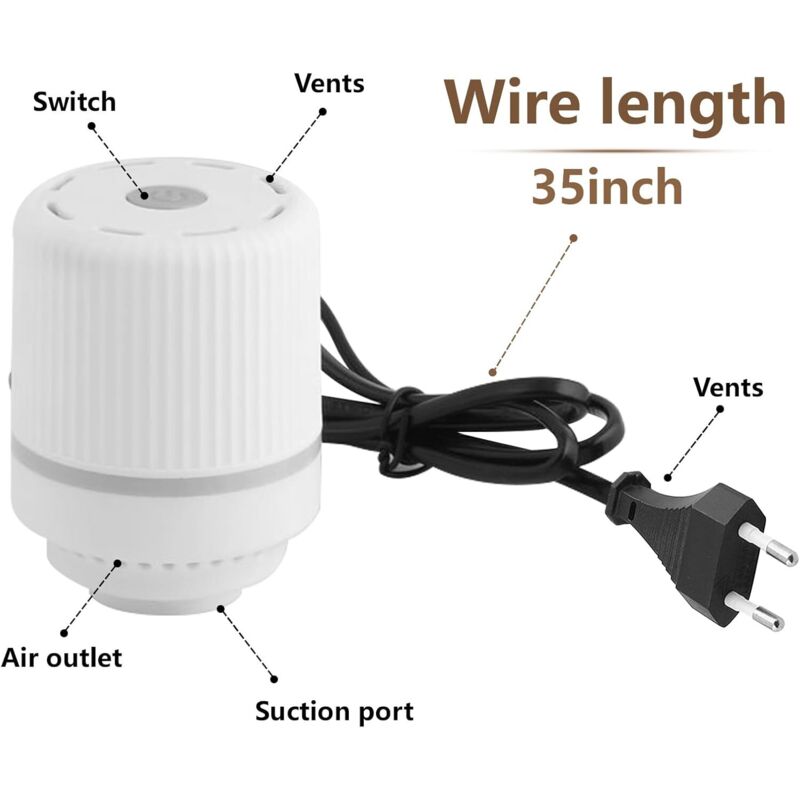 Accessoire Rangement Voyage Pompe à Vide électrique Portable Pour Le Stockage Des Aliments,Machine Aspirateur Sac Sous Vide Voyage Pompe à vide électrique pour Sacs sous vide - 55 W avec super aspiration - 42 K Pa - 220 V - Usage domestique Voyages Déménagement. Pompe à vide... Pompe à main avec sacs sous vide - - Site francophone pour la Sécurité et fiabilité : L'utilisation de la pompe à vide est très sûre et fiable grâce aux mesures de protection électrique professionnelles qui évitent efficacement les problèmes de surcharge et de surchauffe Pompe à Vide pour Sac sous Vide 4000 Pa, Combinaison d'étanchéité sous Vide 30W, Convient pour Toutes Sortes de Sacs à Vide Taille d'évent 4CM Faits saillants principaux Économie d'énergie : la puissance de la pompe à vide électrique est de 30 W, ce qui peut fournir une aspiration sous vide efficace avec une faible consommation d... La pompe à air électrique convient à la plupart des différents types de valves de sortie de sac de mise sous vide disponibles sur le marché. Économie d'espace de stockage : le vide maximum de la pompe à vide est de 4,2 kPa, ce qui permet de comprimer efficacement les objets à l'intérieur et d'économiser de l'espace de stockage Facilité d'utilisation : l'utilisation de la pompe à air électrique pour aspirer l'air des sacs à faible encombrement est plus rapide et plus facile que la pompe manuelle, ce qui augmente considérablement l'efficacité du travail pendant les voyages d'affaires Efficace et économe en énergie:La pompe à air électrique pour sacs sous vide a une puissance de 50W, ce qui permet une aspiration efficace et une faible consommation d'énergie, aidant les utilisateurs à économiser de l'énergie.