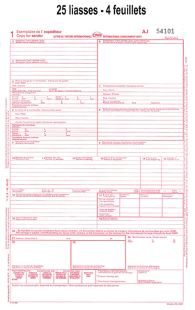 Carnet Facture Lettre De Voiture Unique Vierge (nationale Et Internationale) - 25 Liasses En 5 Ex Carnet Lettre De Voiture Cmr Lettre de Voiture DUT personnalisée grand format 25 liasses de 4 feuillets - Carnet Lettre de voiture Personnalisé Lettre de voiture nationale & internationale CMR. Le modèle grand format mixte A4 (210 x 297 mm), est composé de 4 ou 5 feuillets autocopiants, en carnets de... Les feuillets autocopiants garantissent des copies nettes et lisibles pour toutes les parties concernées : l'expéditeur, le destinataire, le transporteur et l'administration. La mise en page claire et structurée facilite le remplissage des informations importantes comme les coordonnées, la nature de la marchandise, et les conditions de transport. Un outil indispensable pour la gestion efficace et conforme des opérations de transport routier de marchandises. Ce format A4 pratique comprend 25 pages en quadruplicata autocopiant, permettant une documentation précise et professionnelle de chaque envoi. FORMAT PROFESSIONNEL: Document de transport CMR au format A4, idéal pour les expéditions nationales et internationales de marchandises par route AUTOCOPIANT: Système pratique de 4 feuillets autocopiants permettant de créer simultanément plusieurs copies du document ORGANISATION EFFICACE: Structure claire avec des sections distinctes pour l'expéditeur, le destinataire, la marchandise et les instructions de livraison 104 pages (couverture 100 pages) - couverture : cartonnée grise et blanche - Papier autocopiant 80g - Reliure tissu - 25 liasses format A4 autocopiant en 4...