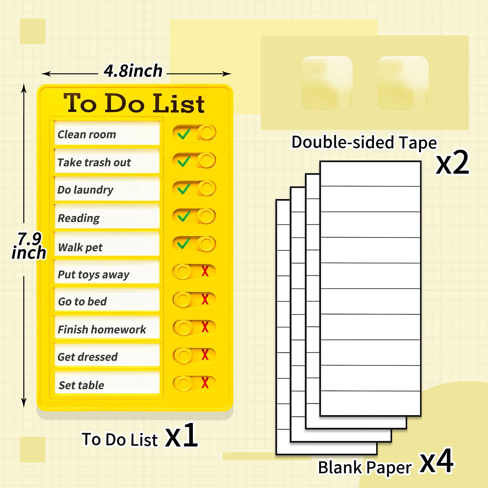 Lot de 4 tableaux de liste de contrôle, liste de choses à faire pour enfants, tableaux de liste de contrôle mémo avec porte-clés, planificateur réutilisable pour l'école et la vie quotidienne Vous pouvez utiliser ce tableau de tâches vierge et le remplir avec les tâches qui conviennent à l’âge et au niveau de maturité de vos enfants. Le tableau est conçu pour apprendre aux enfants à concentrer leur attention et à devenir responsables de leurs responsabilités Corvée Liste Lot De 4 Tableaux De Corvées Vierges Pour Enfants Avec 10 Cartes Détachables, Tableau De Liste De Contrôle En Plastique, Liste De Choses à Faire Et Tableau De Corvées Pour La Planification Modèle De Corvée à Imprimer Tableau de comportement des enfants, feuille de corvée magnétique