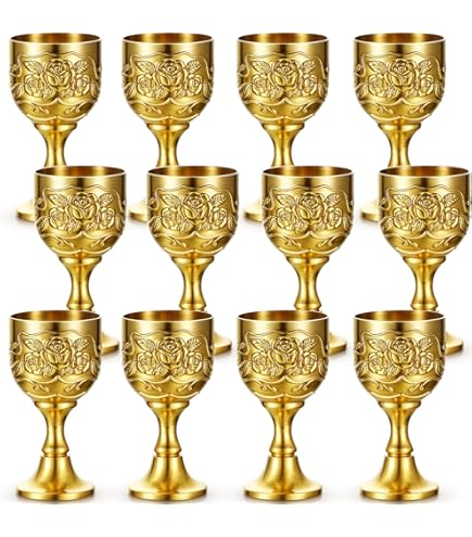 Verre Medieval STOBAZA Lot De 12 Verres à Vin Vintage En Plastique Doré - Verres à Vin Médiévaux - Pour Fête Royale, Bonbons, Autel - Pour église, Noël, Communion Gobelet Cérémonie Religieuse Polyvalent pour divers événements : verres à vin en plastique sont idéaux pour mariages, d'anniversaire et air, offrant une solution et pratique pour servir vin et des boissons, des verres à boire de réception, des verres à vin décoratifs Alipis 12 Pièces Lot de Verres à Vin Vintage Plastique Nettoyage : la surface lisse de ces tasses à vin et verres à whisky assure un nettoyage facile, les gardant prêts pour chaque occasion Set de 6 gobelets vintage, verres hobnail clairs de 12 oz, verrerie... Importance culturelle : ces coupes à vin et coupes d'offrande médiévales présentent des motifs complexes qui honorent la tradition et la foi, ce qui les rend idéales pour une utilisation à l'église et à l'autel Ce verre de communion rustique présente un design unique qui symbolise la tradition et la dévotion, tandis que sa surface facile à nettoyer garantit son entretien. Qualité : conçus pour durer, ces calices médiévaux et ces coupes à boire vintage sont conçus pour réduire les coûts de remplacement et garantir une utilisation constante Description Ce verre à vin rétro allie savoir-faire et praticité, idéal pour les cérémonies de calice à l'église, les fêtes médiévales ou les cérémonies de remise de diplômes.