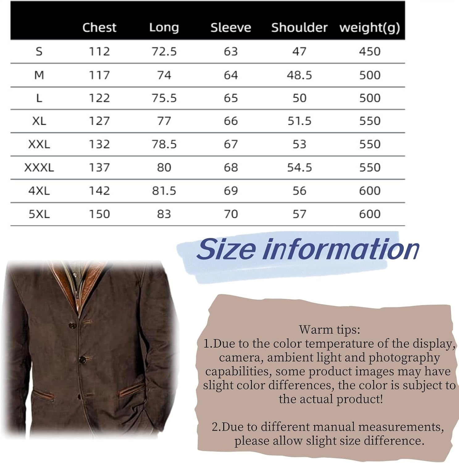 Comment choisir la bonne taille ? 1) Utilisez des vêtements similaires pour comparer les tailles. Options de couleur : disponible en marron classique et noir, cette veste complète sans effort n'importe quelle tenue, ce qui en fait un ajout indispensable à votre garde-robe. Col décontracté : le col à revers ajoute une touche de sophistication à votre look, ce qui le rend adapté pour les sorties décontractées et les occasions plus raffinées. 5) Élasticité : légèrement extensible., 6) Motif : couleur unie., 7) Style : décontracté. Veste vintage en daim pour homme avec doublure en polaire - Manches longues - Fermeture éclair à revers - Veste multi-poches, Vert kaki, Petit Design court élégant : cette veste en daim pour homme dispose d'un design court tendance, parfait pour mettre en valeur votre style décontracté tout en offrant du confort pendant les saisons de printemps et d'automne. 4) Style de manches : manches longues. Mauroicardi-Veste vintage légère en cuir PU pour homme, marron délavé, fermeture éclair, mode coréenne décontractée, printemps, automne · 39,93€. 8 vendus 4... Utilisez des vêtements similaires pour comparer les tailles et optez pour des tailles plus grandes si vos mesures correspondent au tableau des tailles à plat. Couleur : marron, noir (comme sur les photos). Coupe confortable : conçue avec une coupe ample et une légère élasticité, cette veste assure une facilité de mouvement, que vous soyez en vacances ou que vous profitiez des activités quotidiennes. Veste Décontractée Printemps Automne Veste En Daim à Revers Vintage Pour Homme - Vêtements Vintage Et Veste En Daim Pour Femme Vendu par SENSIR BRIGHTEST Store. Services logistique et livraison gérés par AliExpress. Avertissement : Les images et les informations sur les produits figurant sur cette page peuvent être traduites automatiquement par une intelligence artificielle Conseils de taille : veuillez vous référer aux mesures réelles pour un meilleur ajustement.