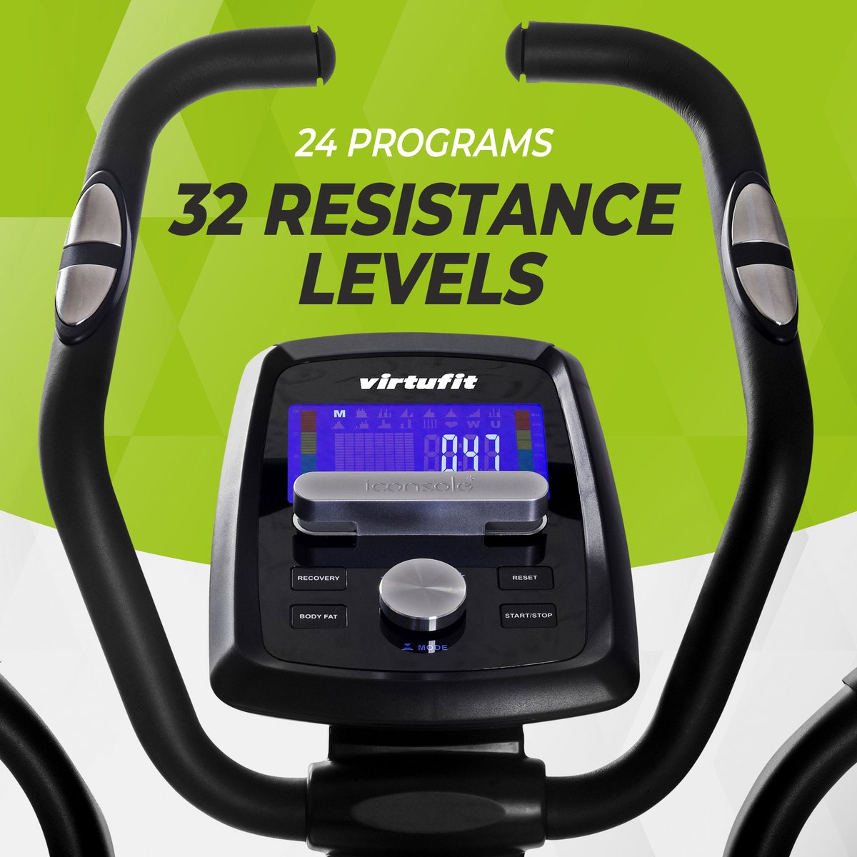 Avec le support pour bouteille d'eau sur l'écran, vous aurez toujours votre hydratation à portée de main. vacht Winkelier Afleiding virtufit iconsole ctr 2.1 België Bladeren verzamelen B Vélo Elliptique Magnétique Virtufit VirtuFit CTR 1.2i Magnetic Cross Trainer Black, Grey Crosstrainer Bluetooth Fréquence Cardiaque Design peu encombrant : le VirtuFit CTR 1., 2i est le trainer idéal pour la maison, spécialement conçu pour les espaces limités. Que ce soit pour les débutants ou les experts, ce gagnant du test à domicile Cross Trainer s'adapte automatiquement à vos besoins et fournit également un test de récupération pour suivre vos progrès de fitness. Bicicleta Crosstrainer Bicicleta VirtuFit CTR 3.0i, Masa rotativa de 26... Programmes d'entraînement intuitifs : augmentez votre forme physique avec 21 modes d'entraînement préprogrammés et 16 niveaux de résistance du VirtuFit CTR 1., 2i. Entraînement avec fréquence cardiaque : l'elliptique VirtuFit CTR 1., 2i permet un entraînement ciblé avec quatre programmes contrôlés par la fréquence cardiaque. Suivez vos performances, sauvegardez vos données d'entraînement et restez motivé en synchronisant vos progrès avec l'application, compatible avec Android (à partir de la version 4., 3) et iOS (à partir de la version 9., 0). Connectivité intelligente : connectez votre smartphone ou votre tablette à VirtuFit CTR 1., 2i via Bluetooth et utilisez l'application Fitshow Fitness pour une expérience d'entraînement interactive.