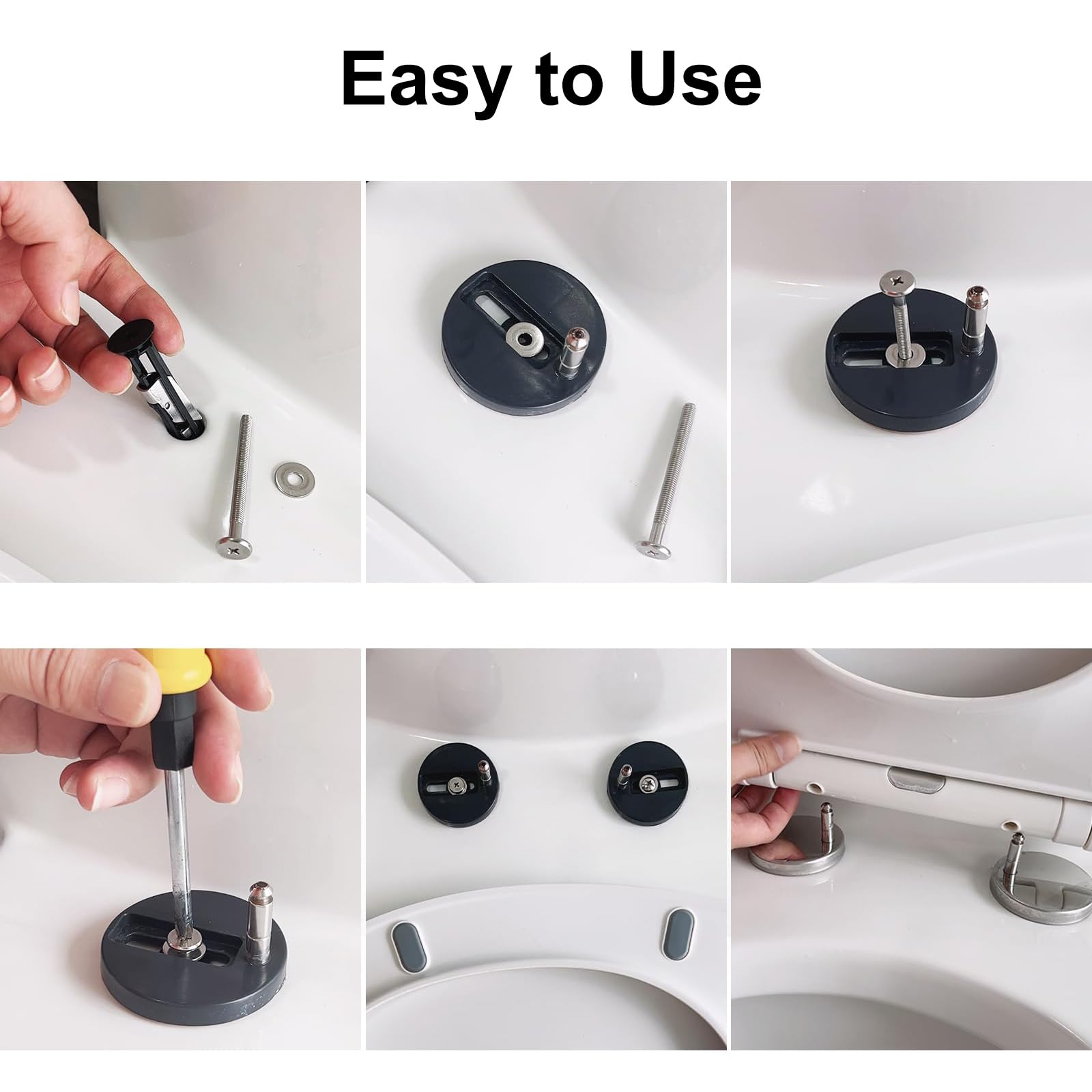 Boulons Siège Toilettes Acier Inoxydable Jeu De 4 Vis De Siège De Toilette, Vis Abattant Wc En Acier Inoxydable Kit De Montage Pour Planche De Wc Fixations Vis Pour Charnieres Facile A In 95929398 Boulon Siège De Toilette 8 Pièces Abattant WC Fixations Charnières, Universelle Vis Extensibles Charnieres A Degagement Rapide Pour Fixer La Vis De Siege De Toilette Ecrou En Caoutchouc Pour Abattant Wc Clipsable 89879950 VIS DE MONTAGE Siège Toilette Boulons Universels Fixation Des Toilettes... Contenu du paquet : 4 boulons à vis pour siège de toilette (avec joints). Contenu de l'emballage : vous recevrez 4 boulons en plastique, 4 rondelles en plastique et 4 écrous, assez pour remplacer un siège de toilette inutile. Installation simple : il suffit d'utiliser un tournevis pour le serrer par le haut. Dimensions : 5,5 x 1,2 cm (longueur x diamètre)., Caractéristiques : 1., Répond au besoin de pièces de rechange et enrichit votre inventaire., 2., La vis de charnière du siège de toilette en acier inoxydable peut bien fixer la housse de toilette, ne tombe pas facilement et ne rouille pas., 3., Design astucieux et installation simple., 4., Il suffit de placer les boulons du siège de toilette dans les trous de montage des toilettes et de serrer les vis. Ou serrez-le directement par le bas à la main sans utiliser de tournevis. Compatibilité polyvalente : conçu pour les charnières du couvercle supérieur, notre boulon de verrouillage robuste pour siège de toilette assure la compatibilité avec différents modèles de toilettes, offrant une solution fiable pour toutes vos fixations de siège de toilettes. Entretien simplifié : avec notre kit de remplacement de boulons de siège de toilette, entretenir votre siège de toilette n'a jamais été aussi facile. Boulons Et Vis | Vecteur Premium