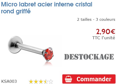 Il est préférable de se placer au dessus d'une serviette lors de la pose pour éviter tout rebond d'un élément si il venait à tomber Recommandations de stockage : Conserver dans un endroit propre et sec, à l'abri de la lumière et des variations de températures Acier chirurgical 316L (ASTM F138), Jonc/Tige 1., 2 mm, Long., int. Désinfecter à réception et avant chaque usage Piercing Vissable 1.6mm Fleur En Cristal Inoki 5 Pétales - Pour Piercing Labret, Barbell Ou Micro-dermal 1.6mm Piercing Vis Interne Nettoyer correctement avant stockage Sauf restrictions particulières éventuellement énumérées ci-dessous, ce bijou est conçu pour une utilisation quotidienne Micro labret acier Strass vis interne. Micro labret acier Strass vis interne. KSA002. 3 tailles - 10 couleurs. 4,90 €. TTC l'unite. Commander · Micro labret... Piercing cartilage, piercing lèvre, piercing lobe. Utilisation : Bijou destiné aux adultes, ne convient pas aux enfants de moins de 15 ans Déclaration de conformité : Bijou conforme aux normes de sécurité en vigueur concernant les substances dangereuses et respectant les exigences de la règlementation REACH Micro Labret Acier Chirurgical Strass INOKI - Micro Labret Acier Vis Interne Boule Acier Noir Multistrass Accessoire Piercing Professionnel Micro labret acier avec strass vis interne. Micro labret en acier chirurgical, avec plateau bombé de 5mm de diamètre sur 1.5mm d'épaisseur pour un confort optimum. Le système de strass vis interne permet d'obtenir des éléments de très petite taille (strass de 2mm de diamètre, 1.2mm d'épaisseur 8 mm, Élément 2 mm (voir schéma de prise de mesure)., Acier chirurgical.