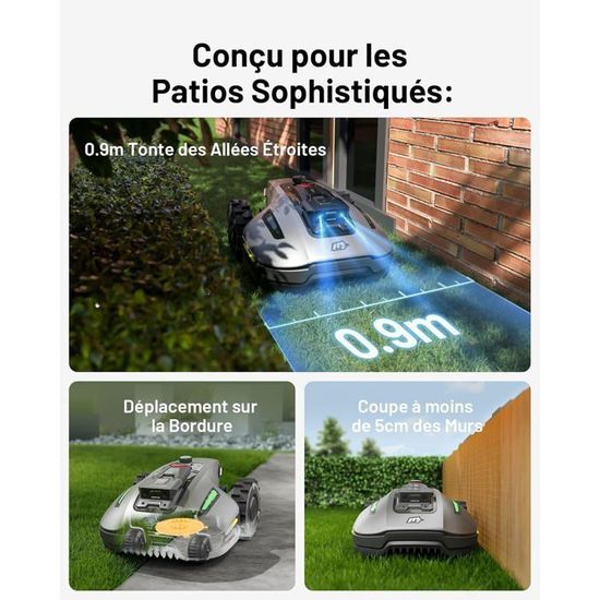 Le module caméra haute résolution fonctionne même par faible luminosité, à l’aube comme au crépuscule — là où les autres tondeuses échouent. Mammotion YUKA Mini Vision, Robot Tondeuse Intelligent sans RTK avec Navigation AI Vision à Triple Caméra, Jusqu'à 700 m², Cartographie Automatique... Avec sa largeur de coupe de 190 mm et son réglage de hauteur ajustable, il s’adapte parfaitement à votre type de gazon. Vision par triple caméra & détection d’obstacles ultra-précise: Doté de trois caméras et d’algorithmes avancés d’IA, le YUKA mini Vision identifie avec précision des objets aussi petits que 5 x 5 cm — comme un hérisson ou des outils de jardinage. Tondeuse Robot Triple Caméra 700 M² Mammotion YUKA Mini Vision, Robot Tondeuse Intelligent Sans Tondeuse Gazon Il planifie des trajets en forme de “N” avec une précision centimétrique, pour une couverture complète, régulière et sans chevauchement. Installation en 1 minute & Cartographie automatique: Grâce à son système de navigation 100 % basé sur la vision, le YUKA mini Vision fonctionne sans RTK ni câbles de délimitation. Coupe au bord & parcours en N pour une couverture sans faille: Grâce à sa technologie Auto Ride-On-Edge, le YUKA mini Vision suit parfaitement les bords de votre pelouse et corrige intelligemment les zones manquées. Une pelouse impeccable, sans effort: Pilotez votre robot depuis l’application ou simplement avec votre voix via Alexa ou Google Home. En cas de déplacement au-delà de 50 m des zones cartographiées, l’application vous alerte immédiatement. Posez et tondez – Zéro configuration, efficacité immédiate: Déployez le YUKA mini Vision n’importe où sur votre pelouse, même non cartographiée : il démarre immédiatement. Il les évite de manière rapide et fiable pour garantir une tonte fluide et sécurisée. Yuka Mini Vision : un robot tondeuse 100% vision, 0% contraintes En dernier jour du mois de juillet, Mammotion frappe fort avec un tout nouveau robot tondeuse qui ne devrait pas vous laisser insensible. Le Yuka Mini Vision est le premier modèle compact de la marque à navigation 100 % visuelle, sans fil périphérique ni station RTK Lors du premier passage, guidez simplement la tondeuse de la zone A à la zone B : elle cartographie automatiquement les zones et définit intelligemment le « canal de tonte » pour une couverture autonome et optimisée par la suite. Et grâce au suivi GPS, localisez votre robot à tout moment, où que vous soyez. AOTION LUBA ini AWD LiDAR – Robot Tondeuse sans Fil Périphérique, avec LiDAR 3D+Vision, sans