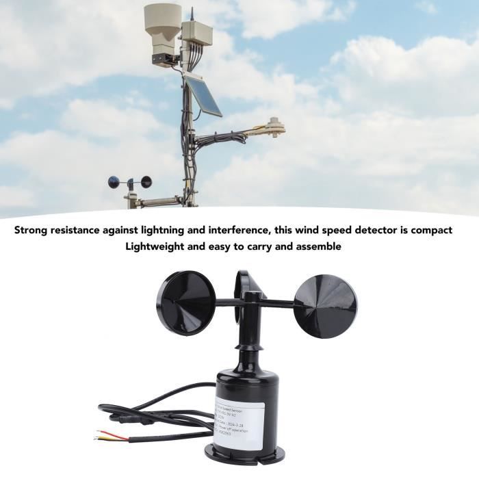 Instrument Météo Environnement Industriel Capteur De Vitesse Du Vent – Anémomètre Extérieur Précis Et Mesure Vent Environnement Anémomètre-girouette sortie 4-20 mA Capteur De Vitesse Du Vent, Pratique Anti-Corrosion Vitesse Du Vent... 0,8 m / 2,6 pieds Précision: ± (0,5 + 0,02 V) m / s (V représente la valeur de vitesse du vent en temps réel) Résolution: 0,1 m / s Début de démarrage: ≤ 0,8 m / s Consommation d'énergie maximale: 0,48W Capacité de chargement: Alimentation DC12V, Impédance de sortie de courant ≤350Ω Alimentation DC24V, Impédance de sortie de courant ≤900Ω, Impédance de sortie de tension ≥1kΩ Environnement de travail: température: -35 ℃ ~ 60 ℃, humidité: ≤ rh non condensation Niveau de protection: IP64 Largement utilisé dans: serreurs, protection de l'environnement, navires, quais, aquaculture, barrières publicitaires, météo, marine, environnement, aéroports, ports, laboratoires, environnements industriels, agricoles et de circulation pour la mesure de la vitesse du vent Formule: 4-20mA: f = (i-4) / 16xa + b F: vitesse du vent, m / s; I: Valeur de courant de sortie du capteur, MA; R: Largeur de plage du capteur (plage supérieure de limite supérieure moins limite inférieure); B: valeur minimale de la plage de capteurs (limite inférieure de la plage); Méthode de connexion du fil: de sortie rouge (tension): alimentation positive de sortie noir (tension): alimentation négative de sortie jaune (tension): Diamètre de la distribution: env. 63 mm / 2,48 pouces Diamètre du trou de montage: env. 3,2 mm / 0,13 pouces Diamètre du bouchon aérien: 158 x 180 x 70 mm / 6,22 x 7,09 x 2,76 pouces Tension d'alimentation: DC9-30V Sortie du : 4-20mA Plage de mesure: vitesse du vent 0 à 45 m / s Longueur de ligne d'extension: env. Protection des interférences ------ Ce capteur de surveillance de la vitesse du vent extérieur est conçu avec une résistance significative à l'interférence, fonctionnement fiable même dans des conditions météorologiques difficiles. Options de câblage polyvalent ------ Le capteur de vitesse du vent prend en les prises de câbles inférieures et latérales, offrant des options d'installation flexibles pour répondre à divers besoins environnementaux. Conception résistante aux intempéries ------ construite pour des conditions difficiles, l'anémomètre à vitesse du vent possède une résistance à la pression impressionnante et peut résister à des vents extrêmes, ce qui le rend pour diverses applications. En plus de la vitesse et de la direction de l’air, tenez compte de l’accessibilité du point de mesure et de la concentration des particules dans l’air. En fonction du design et du principe de mesure, certains anémomètres sont particulièrement indiqués pour mesurer dans certaines conditions