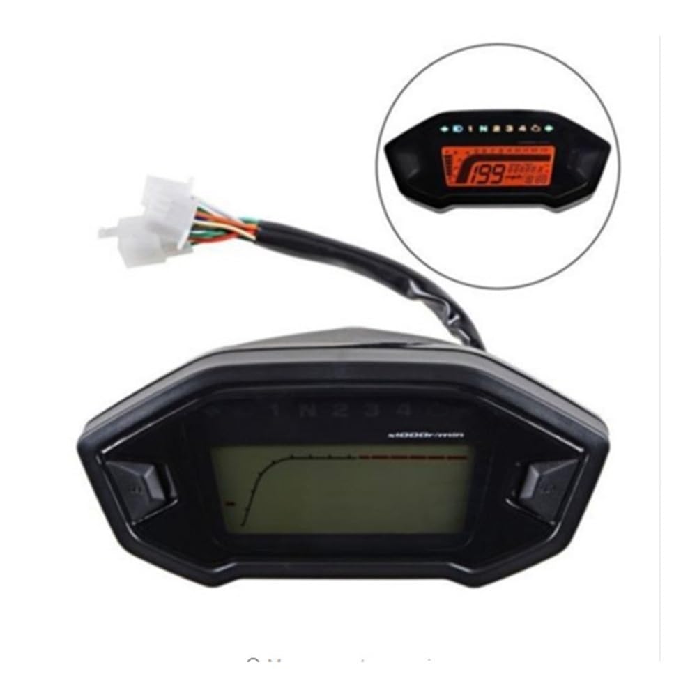 Compteur Vitesse Rpm Niveau Huile Compteur Vitesse Numérique GoolRC Pour Moto - LCD Rétroéclairage - RPM Et Niveau Huile Compteur Numérique Universel Applications : compteur de vitesse de moto, odomètre, tachymètre pour 2 à 4 cylindres. Fonction : le tableau de bord de la moto est robuste et , peut résister aux environnements difficiles, a une ténacité élevée et n'est pas facile à endommager Tableau De Bord Moto Universel Compteur De Vitesse Numérique Universel Pour Moto Noir Tft 14000 Tr/mi Compteur Rétroéclairé Pour 2-4 Cylindres Cher clientBonjour ! Accessoires universels de moto, compteur de vitesse numérique 13000 tr/min, rétro-éclairage pour véhicule à moteur pour 2-4 cylindres, odomètre réglableNom : Compteur de vitesse motoVérifiez toujours la configuration de votre véhicule avant d'acheter pour vous assurer d'avoir choisi le bon produit. Calibrage de la vitesse : 42,5 Hz correspond à 60 km/h, étalonnage de vitesse : 166 Hz correspond à 13 x 1000 tr/min. Écran LCD, rétroéclairage 7 couleurs... Si vous avez des questions concernant votre commande, veuillez d'abord nous contacter. Applications : compteur de vitesse de moto, odomètre, tachymètre pour 2 à 4 cylindres. Esthétique agréable : Le design unique du compteur kilométrique de tachymètre de moto vous donne un look élégant qui complète la beauté de votre vélo. Performance : l'instrument de moto est fait de matériaux pratiques, durables et résistants à l'usure, et la conception du rétroéclairage permet de vérifier facilement les données dans l'obscurité.