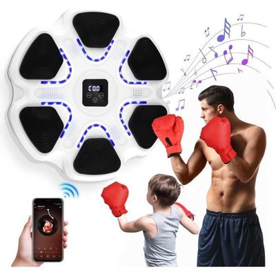 Gants De Boxe Machine De Boxe Bluetooth - 9 Vitesses 10 Modes - Affichage LED - Installation Murale Sans Percage Music Boxing Machine Boxe Musicale Bluetooth Lumières Led Machine De Boxe Musicale Pour Enfants - Avec Gants Et Bluetooth - Murale Ou Posable - Cadeau Fun Entraînement Boxe Bluetooth 12 Modes d'Entraînement et 12 Niveaux de Vitesse – Entièrement Personnalisable]La machine de boxe musicale propose 12 modes réglables et 12 niveaux de vitesse – idéal pour les enfants à partir de 6 ans ainsi que les adultes de tous niveaux de condition physique 🛡️ 【Technologie de Protection Acoustique Triple – Sûre et Silencieuse】La machine de boxe dispose d'une triple couche de protection acoustique en matériau PU haute qualité et mousse. Cette technologie amortit efficacement les impacts, réduit le bruit et protège les articulations des utilisateurs. 🔧 【Installation Facile – Universelle pour Tous les Murs】La machine est livrée avec une bande adhésive forte et une attache Velcro, permettant une fixation sans perçage sur presque toutes les surfaces murales. La cible LED dynamique réagit aux coups avec des effets lumineux colorés et affiche le nombre de touches en temps réel – faisant de chaque session une expérience divertissante pour toute la famille 💡 【Fonctions Intelligentes et Adaptée aux Familles – Fitness Domestique Moderne】Avec un mode économie d'énergie automatique (après 30 minutes d'inactivité) et une batterie rechargeable via USB-C. L'appareil convient aux enfants pour développer la motricité et aux adultes pour évacuer le stress. Inclut des gants respirants pour un démarrage immédiat Acheter appareil de boxe d’occasion à petit prix