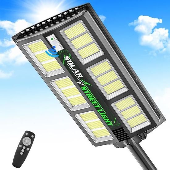 ☼【Télécommande + réglage de la luminosité + minuterie】Autres fonctions : luminosité réglable : 30 %-70 %-100 % ; 2., minuterie 3 h/5 h/8 h ; les lampadaires solaires extérieurs étanches peuvent convertir plus de 25 % de la lumière du soleil en énergie. ☼【Facile à installer】Les lampadaires solaires sont conçus avec un panneau solaire et un luminaire intégrés, sans câblage. ☼【IP65 étanche, Large Applications】Fabriqué en ABS, il est extrêmement durable et dispose d'un indice d'étanchéité IP65, ce qui lui permet de fonctionner normalement dans toutes les conditions météorologiques tout au long de l'année. ☼【Mode détection】Mode lampadaire extérieur : 1., Du crépuscule à l'aube : s'allume automatiquement au coucher du soleil et s'éteint au lever du soleil., 2., Mode détection 1 : lorsque un objet en mouvement est détecté, la luminosité passe de 30 % à 100 %. Viugreum Lampe Solaire Extérieur 190LED Lumière Solaire avec La batterie haute capacité garantit que le mode d'éclairage à détection de mouvement fonctionne toute la nuit. Aucun câblage supplémentaire n'est nécessaire, ce qui permet d'économiser les coûts d'installation et d'électricité Aigostar - Lampadaire solaire avec détecteur LED/50W/3,2V IP65 6500K... Si vous rencontrez des problèmes lors de l'utilisation, n'hésitez pas à nous contacter La lampe solaire adopte une conception unique à grand angle de 240°, couvrant une surface de 800 à 900 pieds carrés. Le paquet contient deux types de vis de montage et des accessoires. Lampadaire IP65 étanche Viugreum Réverbère Solaire Exterieur 600W - 6 Packs Avec Télécommande, 6500K, 1080 LEDs, Détecteur De Mouvement, IP66 Etanche Pour Jardin, Patio, Rue Projecteur Solaire Extérieur LED Dites adieu aux factures d’électricité élevées et bonjour aux économies d’énergie grâce au lampadaire extérieur solaire pas cher ! Outre son aspect pratique, ce luminaire vendu chez donne un rendu esthétique à votre propriété Les lampadaires solaires conviennent aux environnements extérieurs tels que les places, les parcs, les cours, les rues, les parkings, les trottoirs, les campus et les terrasses.