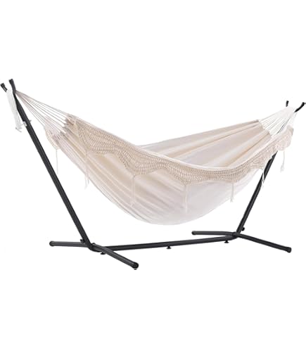 Hamac double Sunbrella matelassé de Vivere à carrousel confetti Détendez-vous confortablement avec le support de hamac universel et le hamac double en coton les plus vendus. Découvrez l'alliance parfaite entre durabilité et détente avec ce hamac haut de gamme Hamac Support Vivere Combo-double Hamac Tropical Avec Support, 9 Pi UHSDO9-20 Hamac Extérieur Pin Robuste C'est un choix naturel pour une conception esthétique solide ou pour agrémenter un espace bien entretenu et immaculé. Fixez solidement le support de hamac à des supports stables. Le hamac double Sunbrella est fabriqué de fils acryliques teints en solution qui résistent aux rayons ultra-violets, à la décoloration, aux taches et aux... Le support procure de la durabilité et le hamac double Sunbrella est disponible dans les spectaculaires couleurs Vivere que vous aimez. Le hamac double Sunbrella est fabriqué de fils acryliques teints en solution qui résistent aux rayons ultra-violets, à la décoloration, aux taches et aux moisissures. Les crochets facilement ajustables permettent de décider à quelle hauteur vous voulez installer le hamac. Le hamac Sunbrella peut rester à l'extérieur toute l'année.