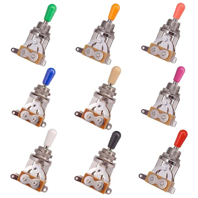 Be In Your Mind Lot de 2 prises jack stéréo 6,35 mm avec 4 broches pour guitare basse 6,35 mm, jack cylindrique, entrée cylindrique, accessoires de guitare, cuivre argenté Description : - Sélecteur de tonalité de sélection de micro de guitare électrique à 3 voies fermé à bascule - Haute qualité et tout neuf, les tests sont... Interrupteur Bascule 3 Voies Les Paul LP Alnicov Interrupteur à Bascule 3 Voies Pour Guitare Basse Les Accessoire Guitare électrique Description du produit : Interrupteur à bascule 1., 3 voies pour guitares électriques de style LP 2., Contrôle facile de la tonalité de la prise en main., 3., Aide parfaitement la fonction de micro de votre guitare., 4., Interrupteurs 3 voies silencieux, de haute qualité pour votre guitare., 5., Durable et facile à utiliser. Dimensions : 5,1 x 3,3 x 1,8 cm., Poids : 22 g. Cet interrupteur à bascule 3 voies est conçu pour les guitares de style Les Paul. Il permet de contrôler facilement les micros (neck, bridge, ou les deux) pour... Matériaux : métal et plastique. Contenu de l'emballage : 1 x commutateur de micro pour guitare. Durable et facile à utiliser Aide parfaitement la fonction de micro de votre guitare