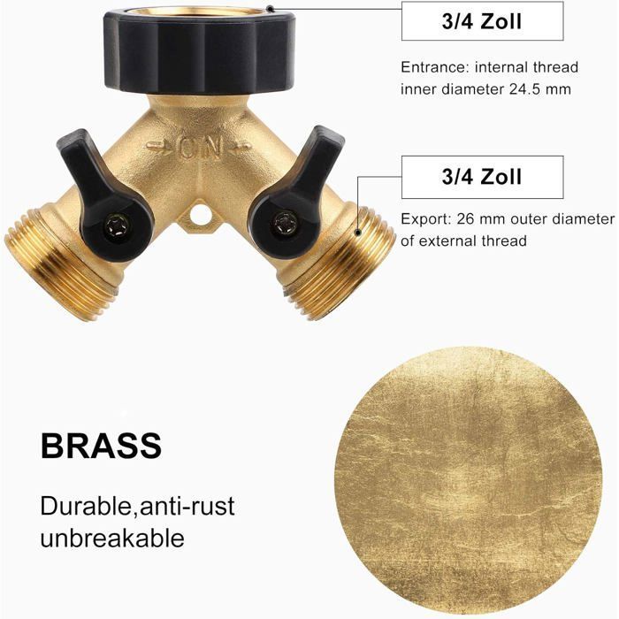 Pour connecter 2 appareils à une alimentation en eau avec un filetage de 3/4 (19 mm), comme par exemple un lave-vaisselle, Raccord En Y YV02 Répartiteur En Y 2 Voies Pour Tuyaux D'alimentation 3/4" Pour Raccord De Robinet Double Machine A Laver Répartiteur en Y avec filetage 3/4. Il n’est pas inclus dans la livraison. Vous achetez uniquement le répartiteur en Y à 2 voies. Convient pour une pression d'eau élevée et un raccordement à l'eau chaude. Contenu : 1 x raccord en Y 3/4 (pas d'autres accessoires). Si vous n'êtes pas sûr du filetage dont vous avez besoin, veuillez vous référer à la liste ci-dessous. Filetage de robinetterie en pouces. Taille (en... Il n’est pas inclus dans la livraison. Contenu :1 x raccord en Y 3/4 (pas d'autres accessoires). CSPARKV Répartiteur Distributeur Y 2 Voies pour Tuyau d'alimentation 3... Pour connecter 2 appareils à une alimentation en eau avec un filetage de 3/4 (19 mm), comme par exemple un lave-vaisselle,une machine à laver, un tuyau d'arrosage, un filtre à eau, un réservoir d'eau ou d’autres appareils. 24,2 mm) et deux filetages externes de 3/4 (env. Si vous n'êtes pas sûr du filetage dont vous avez besoin, veuillez vous référer à la liste ci-dessous. 2-Wege Umstellventil für Aufputz. Ventil Umschalter 1/2 AG auf 1/2 AG (Ventil08 26,4 mm) pour le raccordement de deux tuyaux d'alimentation. Taille (en pouces) / Diamètredu filetage externe (mm) / Diamètredu filetage interne (mm) : 3/8 16,7 15,0 - 1/2 21,0 18,7 - 3/4 26,4 24,2 - 1 33,3 30,3 - 1 1/4 41,9 39,0., Raccord en Y avec un filetage interne de 3/4 (env.