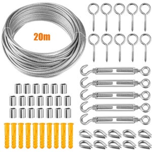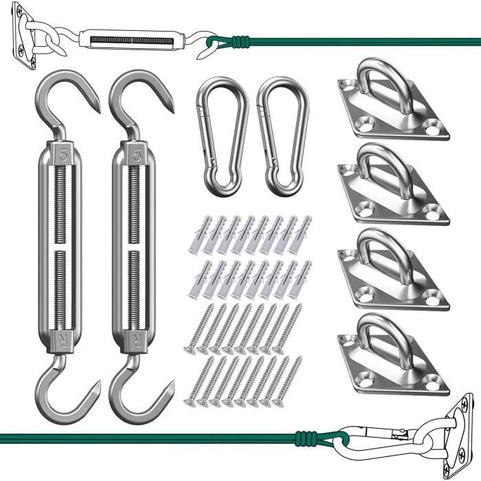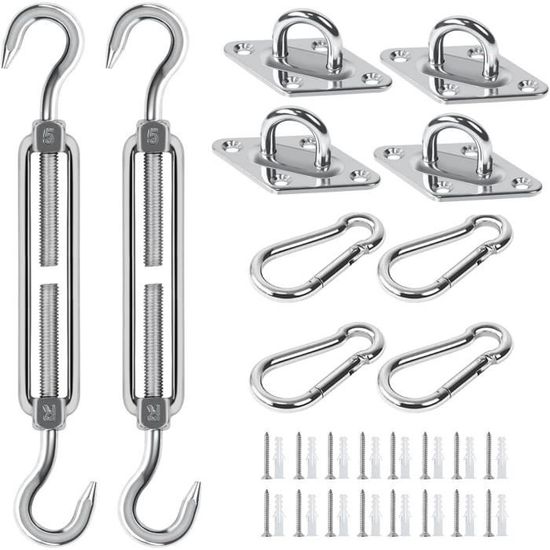 Kit De Fixation Pour Voile D'Ombrage, 40Pcs Kit De Montage Fixations En À propos de cet articleMatériau de haute qualité en acier inoxydable : Ce produit est fabriqué en acier inoxydable 304 de haute qualité, très résistant, antirouille et imputrescible, peut être utilisé longtemps de manière stable et correspond parfaitement à tous les types de voiles d'ombrage.Ensemble d'accessoires d'installation complet : L'ensemble du produit comprend 4 boutons de... Support Voile Ombrage Inox 304 Terrasse Kit De Fixation Pour Voile D'ombrage - KIMISS - Acier Inoxydable Poteaux Pour Voile D'ombrage Kit de 80 pièces de qualité supérieure : fixation pour voile d'ombrage - Contient tout pour une fixation sûre : 4 crochets à ressort M5, 4 mousquetons, 8 supports muraux, 32 vis, 32 extensions en plastique. Robuste et durable en acier inoxydable 304 : accessoire de voile d'ombrage - Stabilité maximale et résistance à la corrosion pour une sécurité durable. Pour installer ta voile d'ombrage en toute sérénité, ce kit de 80 pièces en acier inox 304 a tout ce qu'il faut ! Tendeurs réglables (6-8.4 pouces... Idéal pour tous les types de voiles d'ombrage : montage rapide et maintien optimal Capacité de charge maximale (jusqu'à 64 kg) : tendeur de voile d'ombrage – Maintient également les grands voiles d'ombrage en toute sécurité. Utilisation universelle : système de serrage pour voile d'ombrage - Fixation sur les murs, les poteaux ou d'autres structures stables. Parfait pour le jardin, la terrasse ou le balcon - Votre protection solaire reste stable même en cas de tempête