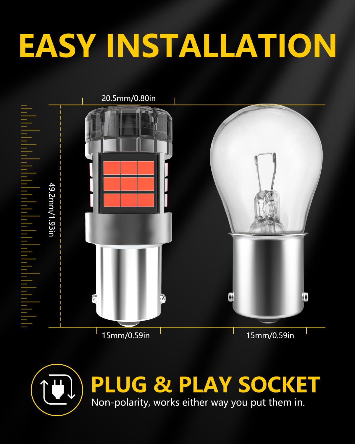 Génération à faible chaleur, bonne dissipation thermique, économie d’énergie, plus sûre que les ampoules halogènes et une durée de vie beaucoup plus longue. Canbus P21w Ba15s 2X Lumière LED Canbus Super Brillante Pour Voiture 1156 BA15S BAU15S 1157 Sans Erreur Pour Clignotant De Recul De Voiture Blanc Ambre.7440.7443 Ampoule BA15S Canbus Caractéristiques du produit:Longue durée de vie, faible consommation d'énergie et luminosité accrue. Intégrant un pilote IC intelligent, les ANTEMOON ampoules 1156 LED sont compatibles avec 99% des systèmes de véhicules, sans erreur de canbus, sans polarité, il... 【Paramètres du Produit】Tension de fonctionnement: 9V-32V pour les véhicules 12V et 24V, température de couleur: 6000K blanc, puissance: 25w/ampoule, flux lumineux: 2500lm/ampoule, poids net: 8g/ampoule. 99% Canbus sans erreur, pour un petit nombre de véhicules sensibles peut nécessiter des décodeur pour éviter le problème de code d’erreur/flash. Xnourney Ampoules LED ultra lumineuses 54X 3014 chipset 1156 P21W, 12V 24V BA15S 7506 6500k Ampoules LED blanches pour voiture, RV, remorque, bateau, feux... 【Extrêmement Lumineux】2 x P21W 1156 BA15S ampoules LED, chaque ampoule contient 42 puces LED GC de super lumineuses, 360 degrés plein éclairage, pas de taches sombres ni de zones d'ombre. Facile à installer, conception non polarisée, il suffit de brancher et de jouer. 【Facile à Installer】La conception de non-polarité, simplement plug and play, facile installent d’ici 5 minutes. 2X lumière LED Canbus Super brillante pour voiture 1156 BA15S Type de LED: 42pcs GC chipsetsTension d'alimentation: DC9V-32VPuissance: haute luminosité 25w/ampoule, basse luminosité 7w/ampouleFlux lumineux: 5000lm/set, 2500lm/ampouleAngle de rayonnement: 360 degrésLarge utilisation: feux de recul, clignotants, feux arrière, feux de freinage, feux de jour, etc. Construit dans le conducteur intelligent pour une meilleure représentation actuelle stable.