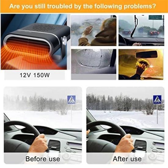 Ce refroidisseur de chauffage de voiture est parfait pour les voitures, le camping et la caravane. Désembueur Pare-brise Chauffage De Voiture, 12 V 150 W, Portable, 2 En 1, Chauffage Et Refroidissement Universel Pour Pare-brise Désembueur Pare-brise Portable Le chauffage de voiture 12 V 150 W peut chauffer rapidement en hiver froid et dispose d'une protection automatique contre la surchauffe. Chauffage 2 en 1 : le chauffage de voiture portable peut être utilisé comme chauffage ou radiateur. Il ne prend pas beaucoup de place dans la voiture et ne bloque pas la vue du conducteur lors de la conduite. Facile à installer : pas de montage compliqué nécessaire, vous pouvez l'installer directement sur le tableau de bord de la voiture et brancher un allume-cigare d'une longueur suffisante de 1,4 m. Hauffe automobile portable,12V 150W chauffage rapide du pare brise d Dimensions : 13,5 x 10 x 6,5 cm Poids : 260 g. La puissance de l'allume-cigare n'est pas inférieure à 12 V/12,5 A/150 W. Le dégivreur du chauffage de pare-brise utilise un adhésif double face ou il suffit de le brancher dans la prise allume-cigare 12 V et de l'allumer. Réglage rotatif à 360° : le dégivreur dispose d'un socle rotatif à 360° qui peut régler l'angle librement, de sorte que les passagers et les conducteurs puissent profiter du vent chaud ou naturel qui en souffle. Ce chauffage automatique de voiture est largement utilisé dans les voitures, SUV, taxis, Jeeps, camions et autres appareils courants. Dedang Chauffe automobile portable,12V 150W chauffage rapide du pare... Support Pour Ordinateur Portable-Base Rotative À 360°-Réglable En... Longueur du câble d'alimentation : 150 cm. Fonctions : Notre chauffage portable pour voiture est économe en énergie (12 V, 150 W), dispose d'une fonction de chauffage et de refroidissement rapide, peut éliminer rapidement le brouillard en 30 secondes. Votre voiture sera endommagée si le courant de sortie de votre voiture est inférieur. Spécifications: Matériau : ABS.