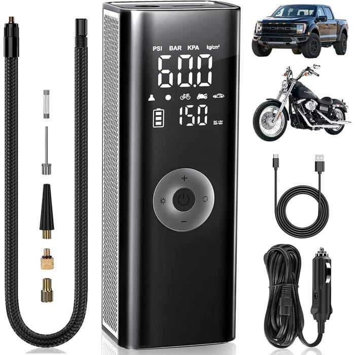 4 Modes Prédéfinis Aiperq Gonfleur Pneus Voiture, 6000mAh Compresseur à Air Portatif Gonfleur Pneus Sans Fil 150psi Avec Ecran Lcd Numerique Pompe A Velo Electrique Avec Lampe Led Pour Moto Trotinette Voiture 87351245 Pompe Pneus électrique 220 PSI Portable 6000mAh Mini Pompe à Air Électrique,Compresseur à Air Portatif Gonfleur Pneus Sans Fil 150psi Avec Ecran Lcd Numerique Pour Moto Trotinette Voiture 98562270 Vélos, motos, scooters, voitures ou ballons : tous les gonfleurs portatifs sont souvent indispensables. Exit les pompes à main, les compresseurs électriques autorisent un gain de temps... Avec une précision de ±1%, c'est le compagnon idéal pour vos trajets. 【Un pouvoir durable】Avec sa batterie 10000mAh (3h d'utilisation continue, recharge en 2-4h), ce gonfleur pneu voiture fonctionne sans fil ou sur allume-cigare. Il peut gonfler 10 pneus de voiture ou 30 pneus de vélo de course, dites adieu à l'angoisse du pouvoir une fois pour toutes. 【Gonflage 4 fois plus rapide & Haute précision】Le pompe a air portable 2025, doté d'un moteur haute performance, offre une vitesse de gonflage record de 36L/min : un pneu 195/65/R15 passe de 0 à 35 PSI en moins de 5 minutes ! 【4+N MODES INTELLIGENTS】Le compresseur à air portatif est préréglé avec 4 unités de pression : PSI, KPA, BAR, KG/CM², et 4 modes de gonflage prédéfinis : vélo, moto, voiture et ballon. Le cinquième mode personnalisé peut également régler la valeur de la pression en fonction de l'objet gonflable, simple à utiliser. 【Compresseurs d'air portatifs multifonctionnel】En plus de gonfler les pneus, il pompe à air portable s'agit d'un outil d'urgence polyvalent. Compresseur À Air Portatif, Gonfleur Pneus Voiture, Pompes Automatiques...