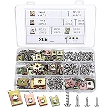 Coffret de 90 clips de carrosserie : Comprend 8 vis hexagonales, 8 écrous en U, 8 boulons, 8 supports d'écrou en U, 13 vis de panneau, 12 rondelles de protection thermique, 17 écrous expansibles et 16 clips à ressort, pour une grande variété de réparations automobiles. Kit Fixation Automobile 90 Pièces 90 Pcs U Clips De Fixation Voiture, Auto Kit De Clip à Vis écrou Acier Inoxydable 304 Résistant Quels sont les avantages de nos écrous de panneau pour voitures ? 1., Les vis de protection sont fabriquées en acier inoxydable 304 de haute qualité, alliant robustesse et résistance aux hautes températures., 2., Chaque kit contient une combinaison soigneusement sélectionnée d'éléments de fixation, notamment des vis hexagonales, des boulons, des clips en U, des clips à ressort, des écrous expansibles, etc. COLLIERS EN U : Le kit complet comprend des supports de fixation en U qui améliorent l'étanchéité au niveau des points de connexion. Ils empêchent le desserrage ou le détachement des vis, réduisent les bruits de cliquetis et éliminent le gaspillage de vis dû à un mauvais appariement Les pinces et vis en U sont en fer noir pour une résistance accrue et une durabilité accrue. Fiabilité : Conçus pour une utilisation automobile et mécanique, ces clips de fixation pour voiture absorbent les vibrations, supportent le poids et fixent fermement le panneau isolant sous le capot ou la carrosserie, ce qui les rend adaptés à de nombreuses réparations. 110 Pcs Clips de Fixation Voiture, Clips Baguette de Porte, Clip de Fixation en Plastique pour Garniture de Porte, Panneaux de Voiture, Pare-chocs, Garde-boue... Nous vous répondrons dans les plus brefs délais. pour des réparations et des assemblages sûrs et flexibles sur votre voiture., 3., Adapté aux travaux de réparation et de construction, il réduit les vibrations et fixe solidement le bouclier thermique sous le capot ou sur la plaque de support. Les rondelles améliorent l'adhérence et assurent une fixation sûre. écrou Clip,iSpchen 10pcs 5 U Clips Clips éCrous à Vis Clip Il est donc adapté à une grande variété d'applications automobiles., 4., La conception innovante des rondelles améliore l'adhérence entre les composants et assure un maintien sûr pendant le fonctionnement. Elles assurent une pression et un frottement stables, simplifiant ainsi l'entretien et les réglages quotidiens.