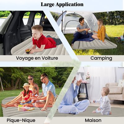 【Large application】Idéal pour des styles de vie diversifiés, ce lit gonflable est parfait pour le camping, les voyages en voiture, les pique-niques et même comme lit d'appoint à la maison. Pompe Matelas Gonflable COSTWAY Matelas Gonflable Voiture Avec Pompe Électrique 12V, Siège Arrière Avec Lit Gonflable Ses 7 chambres à air indépendantes, y compris les ailes de soutien, permettent une inflation flexible selon l'espace disponible dans votre voiture. Achetez Matelas Gonflable pour Voiture Lit Air Pliante avec le Souffleur 12V 40W Capacité Max. 300 KG 180 X 128 X 12 CM sur , bénéficiez des promotions diverses avec une livraison gratuite sur tous les produits Conçu avec des ailes de matelas pour un confort et un ajustement universel Peut fournir un support corporel complet grace à sa grande taille Design double face pour répondre à différents besoins Construction fiable en matériaux résistants aux déchirures et au froid Gonflage rapide en 5 minutes à l'aide de la pompe à air incluse Dispose de valves anti-fuite pour un sommeil réparateur toute la nuit Compagnon idéal pour les voyages en voiture, le camping, les pique-niques, et plus Le paquet comprend un sac de rangement pour un transport pratique Spécifications : Couleur : Gris Matériau : PVC + Flocage Dimension Gonflée : 190 cm x 130 cm (L x l) Épaisseur Gonflée : 15 cm Capacité de Poids Maximale : 150 kg Poids Net : 4 kg Contenu de l'emballage : 1 x Matelas Gonflable 1 x Pompe à Air 3 x Buse 4 x Patch de Réparation 1 x Sac de Rangement 1 x Guide de l'Utilisateur 【Matelas gonflable spacieux et confortable】Ce matelas gonflable vous offre un sommeil réparateur, mesurant 190 x 130 cm avec une épaisseur de 15 cm. Matelas Gonflable Pour Voiture Suv - Matelas Gonflable Amovible - Matelas Gonflable Épais Pour... Caractéristiques : Convient à la plupart des véhicules, tels que camping-cars, MPV, SUV, etc. Le design double face offre une surface en PVC lisse pour un nettoyage facile et une surface en flocage doux pour plus de chaleur et de confort. 【Conception double face】Une face de ce lit gonflable pour voiture possède une surface en PVC lisse facile à nettoyer, tandis que l'autre offre une surface en flocage douce pour une chaleur et un confort accrus. Matelas Gonflable Pour Voiture Suv - Matelas Gonflable Amovible - Matelas Gonflable Épais Pour Rapide et facile à gonfler grace à la pompe à air montée sur véhicule incluse, ce lit gonflable est parfait pour le camping, les voyages en voiture, les pique-niques ou comme lit d'appoint à la maison. Vous pouvez adapter votre expérience de sommeil selon vos préférences.