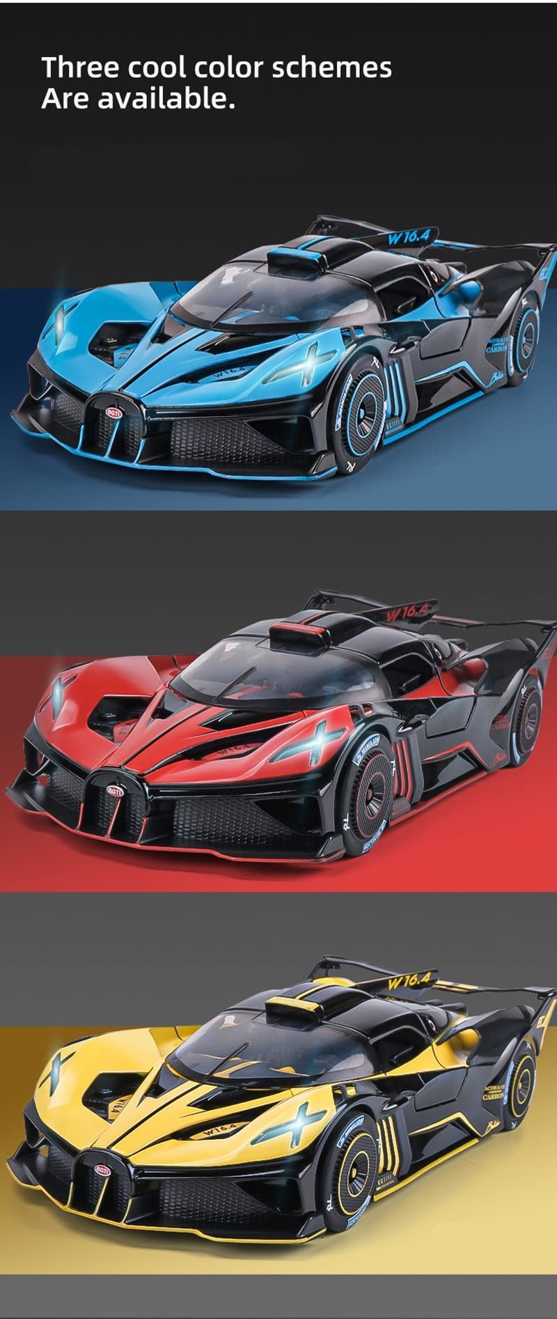 Un total de trois vitesses, c'est la première vitesse pour éteindre la puissance. Les fenêtres sont en acrylique, non toxique et inodore. Voiture Miniature Bugatti Modèle De Voiture De Sport En Alliage Bugatti Bolide, 1:24, Moulé Sous Pression, Jouet En Métal, Super Voiture, Simulation, Son, Lumière, Cadeau Pour Enfants Voiture De Collection Bugatti Bolide Veyron And La Voiture Noire Pubg Mobile 4k Wallpaper,HD... Les pneus en caoutchouc sont solides et durables. Description du produit Ce jouet de voiture est très robuste et cool, il vaut la peine de posséder. Il peut enseigner aux enfants les bonnes connaissances sur les voitures. Jouer avec la voiture jouet peut développer les capacités pratiques de votre bébé, activer l'esprit de votre bébé et stimuler des découvertes et des explorations sans fin. Offre une protection sûre pour vous et votre famille. Cette voiture jouet a un interrupteur à trois positions sur le bas. Design de simulation exquis ► Conception de porte complète, capot, coffre peut être ouvert, l'intérieur est très réaliste, les détails internes et externes du modèle de voiture soigneusement sculptés en référence à la vraie voiture, bien faits. Le modèle de voiture jouet est très réaliste. Bburago Signature Serie 1:18 - 1 - Voiture de sport miniature - Ferrari... Modèle de voiture multifonction son et lumière ► Appuyez sur les deux roues de la voiture avant pour déclencher le bruit du moteur et les lumières, et ouvrez la porte pour déclencher les lumières des feux avant et arrière. Il y a aussi un beau ciel étoilé coloré sur le dessus, l'enfant va adorer ce jouet. Il a des sons et des lumières cool. Voiture Miniature de Collection - MAISTO 1/24 - BUGATTI Bolide Special