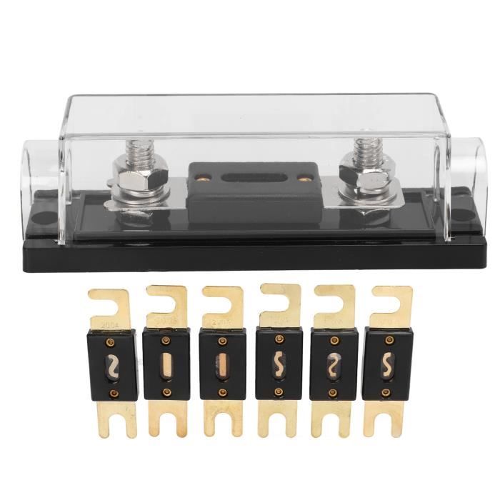 Porte-fusible ANL Audio Porte-fusible ANL Heschen 180A - Pour Support Fusible 180A Calibre 0/2/4 Armaflex 19mm Porte-fusible ANL Heschen - Pour Audio Voiture - Entrée/sortie 0/2/4 - Fusible 200A Inclus Fusible Auto Connecteur Fusible Plaqué Or Ils les décrivent comme étant de bonne qualité, parfaits pour le branchement et ayant une bonne finition. Les clients apprécient également la protection prévue qui assure la sécurité de leur circuit électrique Le support ANL en ligne est adapté à la jauge carrée 0-2-4 , Tension nominale : 32V Heschen Porte-fusible ANL pour voiture audio vidéo stéréo, entrée et sortie de calibre 0/2/4, avec fusible ANL (180A) Construction en plaque de métal plaqué or, finition et conductivité durables Fonctionne pour les onduleur, systèmes audio de voiture et autres utilisations à haute intensité Installation Facile pour des Combinaisons... Porte-fusible : Plastique PC + métal, résistance aux températures élevées Fusible : Matériau plaqué or