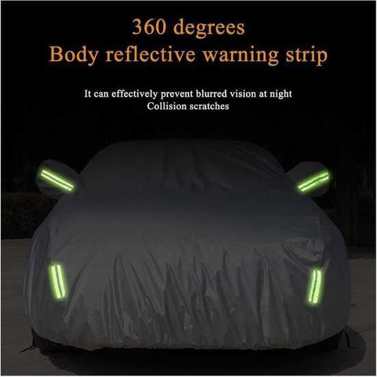 Couverture Pare Brise Voiture Favoto Bâche Voiture Exterieur Housse De Protection Couverture Imperméable Auto, Ouverte Latérale Pour Cabine, Doublure En Coton, Anti UV Neige Bache De Protection Exterieur Housse de Protection pour Voiture SUV avec Fermeture éclair Taille YXXL Favoto Bâche de protection imperméable pour voiture d'extérieur pour SUV, fabriquée en PEVA et coton avec fermeture éclair latérale, anti-eau, poussière... (Autreykorn propose des housses de voiture dans différentes tailles. Veuillez consulter les images sur la page et vérifier les dimensions de votre voiture avant l'achat pour choisir la taille la plus adaptée, garantissant une protection optimale pour votre véhicule., ) Montage simple, protection améliorée contre les vents forts : 1., Après avoir déplié la housse, repérez la fermeture éclair (située du côté conducteur) et positionnez-la sur la voiture., 2., Appliquez les protège-rétroviseurs., 3., Fixez les quatre sangles de roues aux pneus de la voiture., 4., Attachez et serrez les sangles anti-vent sur les deux côtés de la voiture, ainsi que celles en dessous. Adaptation parfaite : Dimensions 370 x 165 x 155 cm , adapté aux Segment A. Ces matériaux sont le meilleur choix pour protéger la carrosserie, offrant une résistance à la pluie, au vent, à la neige et aux UV, protégeant la peinture et l'intérieur de la voiture des dommages causés par le soleil Protection sûre 24h/24 : La housse est équipée de plusieurs bandes réfléchissantes, rendant votre voiture visible même la nuit, réduisant ainsi le risque de dommages causés par d'autres véhicules Le sac pratique inclus permet de la ranger facilement dans le coffre de la voiture Facile à utiliser : Du côté conducteur, une fermeture éclair (avec une bande réfléchissante bien visible à proximité) permet d'ouvrir la portière sans avoir à retirer la housse