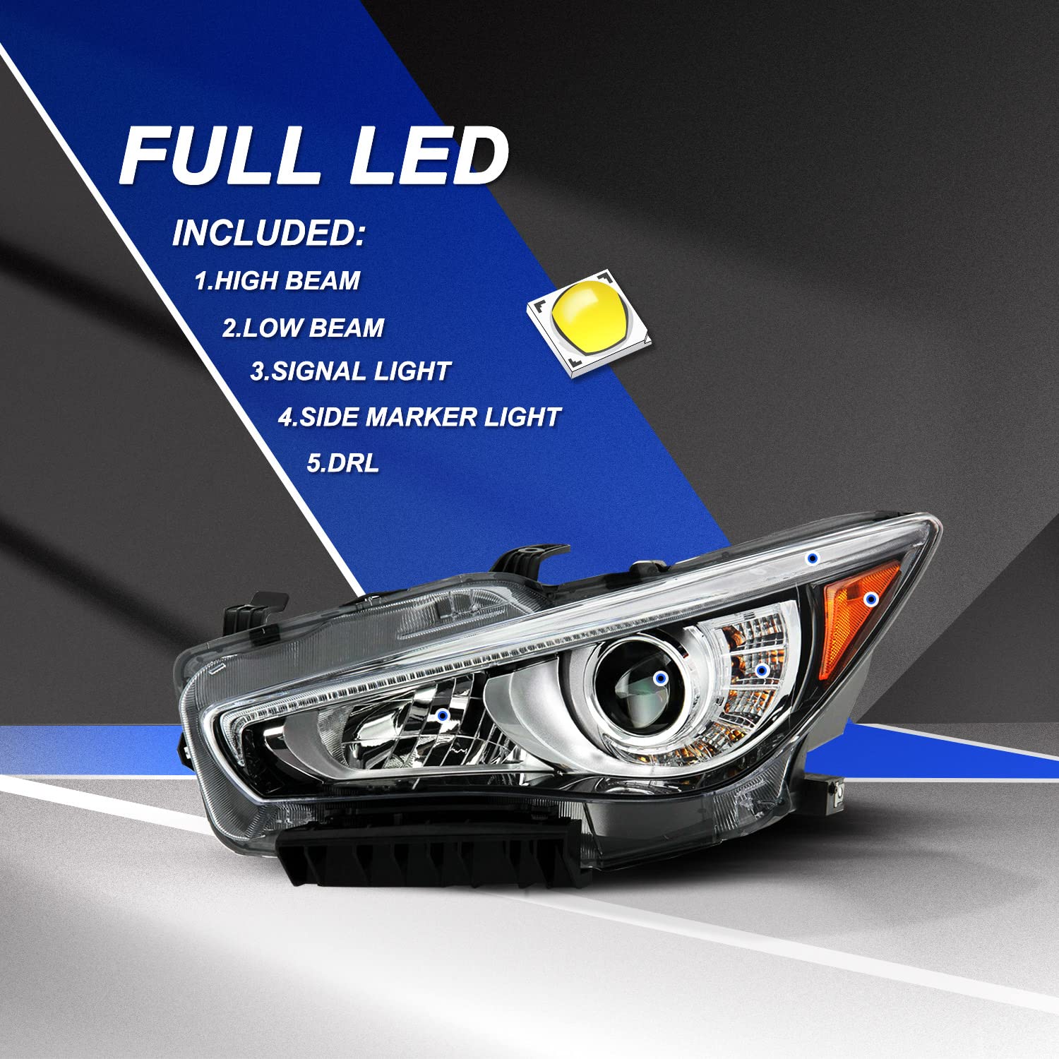 SOCKIR Ensemble de phares compatible avec Infiniti Q50 2014-2022 Full LED avec DRL LED sans projecteur AFS Ampoules de phare incluses côté passager droit Économie d'énergie : économie d'énergie et protection de l'environnement, installation humanisée et fente pour carte détachable, plug and play. Phare Avant LED Infiniti Q50 SQOFJDF Phare LED De Voiture Pour Infiniti Q50l Q50 2015-2018 Systèmes Assemblage Phare Automatique Infiniti Praticité : , étanche, anti-poussière, anti-buée, peut être utilisé dans des environnements difficiles. Découvrez nos packs d'ampoules Leds Infiniti avec notice de montage. Phares xénon, plaque, habitacle. Installation facile, Leds de qualité et Livraison 48H Mannequin Sur La Voiture De Salle D'Infiniti Q50L Photo stock éditorial... L'ensemble phare est le remplacement parfait des pièces d'usine, conçu pour une installation rapide et facile sans perçage ni modification. Réduit la consommation d'énergie et économise l'énergie. Installation : Pour remplacer les caches de phares usagés, cassés ou rayés, facile à retirer et à installer. Temps de réponse marche/arrêt plus rapide, effet d'avertissement accrocheur, améliore la sécurité de conduite. Les lentilles en polycarbonate transparent et en ambre transparent adoptent une technologie optique de précision pour fournir une concentration de lumière hautement contrôlable pour une meilleure visibilité dans l'obscurité. Phare Led de voiture pour Infiniti Q50l Q50 2015-2018 systèmes d'éclairage automatique d'assemblage de phareDes perles de lampe importées sont utilisées, avec une luminosité élevée, une concentration élevée et une faible consommation d'énergie.