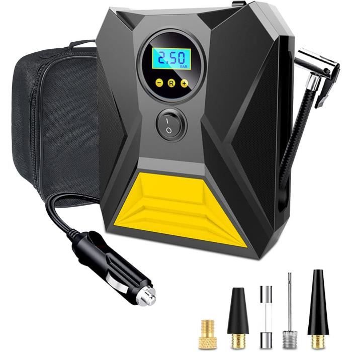 Pompe à Air Voiture Urgence Déplacement Gonfleur Pneu Voiture Sans Fil 150PSI, Compresseur à Air Portatif Gonfleur Vélo Moto Ballon Gonfleur De Pneu Portatif | Pompes À Pneus Automatiques - Compresseur D Compresseur à Air Portatif, Gonfleur Pneus, 150PSI Pompe à Air Type-C... Elle doit rester branchée pendant le fonctionnement et ne doit jamais être laissée sans surveillance. Ne touchez pas le tuyau d'air ni le connecteur de la pompe pendant le fonctionnement pour éviter les brûlures dues aux températures élevées. Arrêtez manuellement la pompe lorsqu'elle est pleine d'air. 【Remarque】 Cette pompe doit être utilisée pendant plus de 5 minutes avant une pause de 2 minutes. 【Contenu de l'emballage】 vous recevrez un compresseur d'air, un câble de charge allume-cigare de 2,7 m et 3 adaptateurs. Il peut gonfler des pneus de voiture, de moto, de vélo, des ballons, etc. Il ne convient pas au gonflage d'équipements volumineux. Compresseur À Air Portatif Sans Fil 150Psi Gonfleur Pneus Voiture...