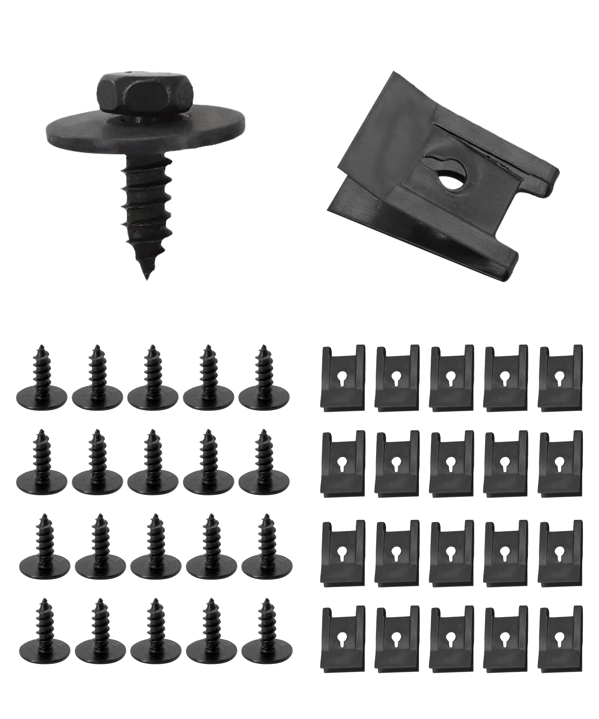 Kit Fixation Pare-chocs Métal Vis De Carrosserie Pour Ailes De VoituresVis Et D'ecrous Clips En Vis Garde Boue Ce kit de clips vis et écrous répartit uniformément la pression, garantissant la stabilité des composants automobiles. Installation facile : Grâce à leur design pratique et à leur texture transparente, nos écrous de fixation pour garde-boue sont faciles à installer Uolor 100PCS Vis et Boulons de Voiture, Vis de Soubasseent, Vis d'Aile de [Conception pratique] : les colliers de serrage pour vis et écrous de carrosserie sont fabriqués avec un savoir-faire exquis, avec une surface lisse et une texture claire. Fonction du produit] : le collier de serrage pour vis et écrous de carrosserie peut être utilisé pour fixer les ailes de voiture, les pare-chocs, les panneaux... [Large application] : les colliers de serrage à vis et écrous pour carrosserie de voiture conviennent à la plupart des voitures, camions, SUV, etc. [Fonction du produit] : le collier de serrage pour vis et écrous de carrosserie peut être utilisé pour fixer les ailes de voiture, les pare-chocs, les panneaux intérieurs, les moteurs, etc. Il est très solide et constitue un élément essentiel pour l'entretien du véhicule. Matériau : métal Couleur : noir Qu'est-ce qui est inclus dans la boîte ? -40 pièces x clips de vis et d'écrous de carrosserie (20 supports métalliques + 20 vis) ou -60 pièces x clips de vis et d'écrous de carrosserie (30 supports métalliques + 30 vis) Avantage de notre produit -Matériau : fabriqué en métal de haute qualité, robuste et durable -Fonction : utilisé pour réparer les ailes, les pare-chocs et les moteurs de voiture -Utilisation : simple à utiliser et facile à utiliser -Pratique : surface lisse et texture claire -Applicable : convient à la plupart des voitures, camions, SUV, etc.