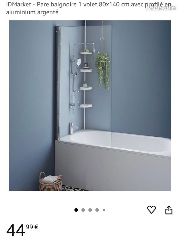 De plus, son joint d'étanchéité transparent est à poser sous la paroi pivotante pour éviter les éclaboussures et inondations. Dimensions pare baignoire 1 volet 80 x 140 cmDimensions globales : Longueur 80 x largeur 3 x Hauteur 140 cmÉpaisseur du verre : 4 mmPivotant à 180°Réversible (installation à droite ou à gauche)Matériaux : Structure en aluminium, verre trempéColoris : Aluminium, transparentÀ monter soi-mêmeJoint d'étanchéité et kit de fixation inclus Pare baignoire de 80 x 140 cm évite les éclaboussures et inondations dans votre SDB Avec sa fonction pivotante à 180°, vous pourrez accéder facilement à votre baignoire. Pare baignoire IBIZA BLACK pas cher Notre pare baignoire est livré avec une notice de montage détaillée ainsi qu'un kit de fixation pour simplifier votre installation. Ce dernier vous garantira un sol toujours au sec et un environnement de bain agréable. profilé aspect chromé paroi de baignoire rabattable avec porte... Structure en aluminium + verre trempé de 4 mm d'épaisseur / Kit de fixation inclus prêt à poser , Dimensions : L., 80 x l., 3 x H. Transformez votre salle de bain en un espace moderne et épuré avec notre pare baignoire 1 volet de 80 x 140 cm. Pare baignoire 1 volet aluminium argenté pour une touche de modernité dans votre salle de bain Paroi De Baignoire Sans Percage Doporro Paroi De Baignoire 80x140 Cm Pare Baignoire 1 Volet Verre Trempe Transparent Avec Bandes Opaques Profiles Noir Montage Reversible Cortona201ms 93037093 Kit Fixation Pare Baignoire Joint étanchéité Vous êtes à la recherche d'un pare baignoire pour aménager votre salle de bain ? Optez pour ce pare baignoire 1 volet de 80 x 140 cm sérigraphié effet verrière. Conçu pour allier fonctionnalité et esthétisme, ce pare baignoire protégera votre salle de bain des éclaboussures, tout en ajoutant une touche industrielle. Pivotant à 180° et réversible, il s'adaptera à n'importe quelle... Pivotante à 180° et réversible à droite comme à gauche, il s'adaptera facilement à votre SDB