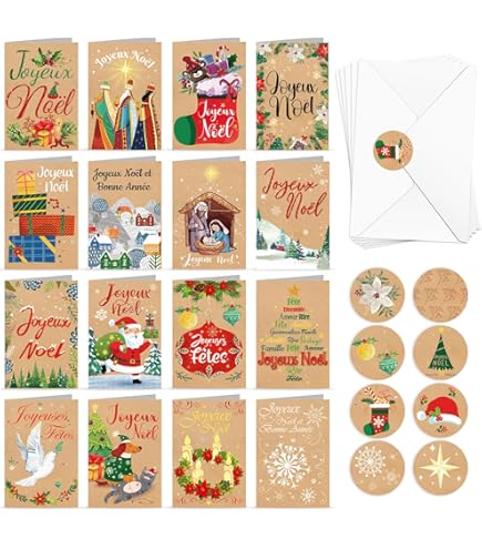 À l'approche de Noël, ce coffret de cartes cadeaux vous offre une solution attentionnée pour transmettre vos vœux. Carte de Noël - Joyeux Noël, Nouvel An - Carte pliante (15 x L'emballage A contient 15 ensembles (3 ensembles de 5 motifs chacun), pliés en deux au format 10 × 15 cm ; Le paquet B contient 8 ensembles (8 motifs), pliés en deux au format 12,5 × 8,5 cm, pour transmettre avec précision des pensées uniques et s'adapter facilement à des cadeaux de différentes tailles. Gift Card Amazon Carte De Voeux Pour Le Nouvel An : Nous Vous Souhaitons Un Joyeux Noël Et Une Bonne Année Photo Cartes De Vœux Noël Avec Enveloppes Particulièrement adapté aux environnements professionnels, il permet de transmettre des vœux de Noël à ses collègues, d'exprimer sa gratitude et ses vœux à ses partenaires commerciaux et à ses clients. Chaque carte de vœux offre un large espace d'écriture, pour un message court ou long. 48 Pièces Carte De Voeux De Style Chinois Note De Noël Merci Voiture... LargementUtilisé: Cartes de vœux intègre profondément les éléments classiques de Noël, des symboles traditionnels aux images captivantes, pour créer une ambiance festive intense. Que vous utilisiez un stylo-plume pour écrire des vœux affectueux ou un stylo de couleur pour dessiner des motifs créatifs, les traits traversent le papier en douceur sans pénétrer l'encre ni salir le carton. PACK : comprend 6 cartes avec 6 enveloppes. TAILLES : Taille pliée : 10x15cm, taille ouverte : 20x15cm UN ESSENTIEL DE CHRISTMAS : ces vacances peuvent être... Matériaux de Haute Qualité: Deux modèles carte noel sont fabriqués en carton de haute qualité, épais et délicat. Que vous préfériez un style classique et nostalgique ou un style vif et mignon, vous trouverez forcément le style qui vous convient. Designs Variés: Enveloppe noel souligne l'ambiance festive avec des éléments rétro, associés à des enveloppes en papier kraft nostalgiques, pour transmettre des vœux paisibles et chaleureux. Style Rétro Les 5 motifs intègrent des éléments classiques de Noël tels que le Père Noël, les flocons de neige, les sapins de Noël et les branches de sapin, et sont accompagnés d'enveloppes en papier kraft au charme nostalgique, qui évoquent le temps qui passe. Transport de Pensées: Les deux carte cadeau disposent d'un espace vierge suffisamment grand pour s'étirer.