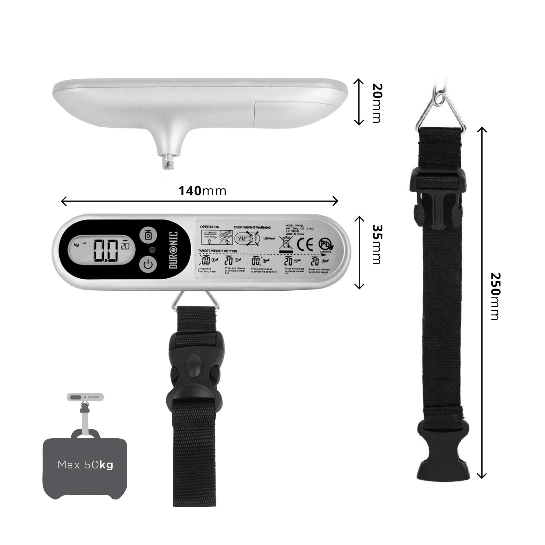 Pèse bagage DURONIC Duronic LS1013 Balance de Voyage argenté Soulevez la balance et le bagage pour obtenir immédiatement le poids. Balance Voyage Aéroport Affichage Kg Lb Duronic LS1008 -BK Balance De Voyage à Sangles Pour Peser Bagages Et Balance Valise Duronic Ls1013 La sangle s'enroule autour du manche de la valise et s'accroche sur la balance grâce à un simple clip. Balance numérique de pêche à suspendre - Balance électronique de poche... Balance Pèse Personne, Balance Connectée Bluetooth avec a Application... Un bouton ON/OFF permet d'éteindre l'appareil lorsque vous ne l'utilisez pas. Remarque: Il n'est pas nécessaire de tirer la valise de temps pour obtenir une mesure précise, il suffit de la soulever légèrement du sol. Le couvercle du compartiment à piles est à ouverture facile et ne nécessite aucun outil pour être ouvert contrairement à d'autres modèles. Cette balance pese-bagages est dotée d'une poignée ergonomique au design arrondi pour s'adapter à la forme de votre main. Il est possible d'obtenir la mesure en kilogrammes, stones ou livres. Obtenez rapidement une mesure exacte du poids de votre bagage et évitez les surprises désagréables à l'aéroport grâce aux balances de voyage Duronic.